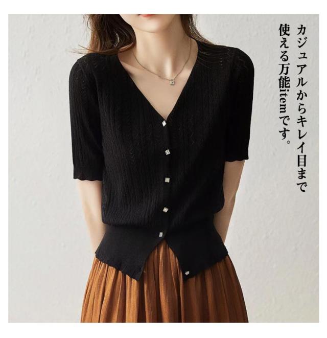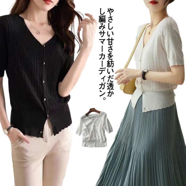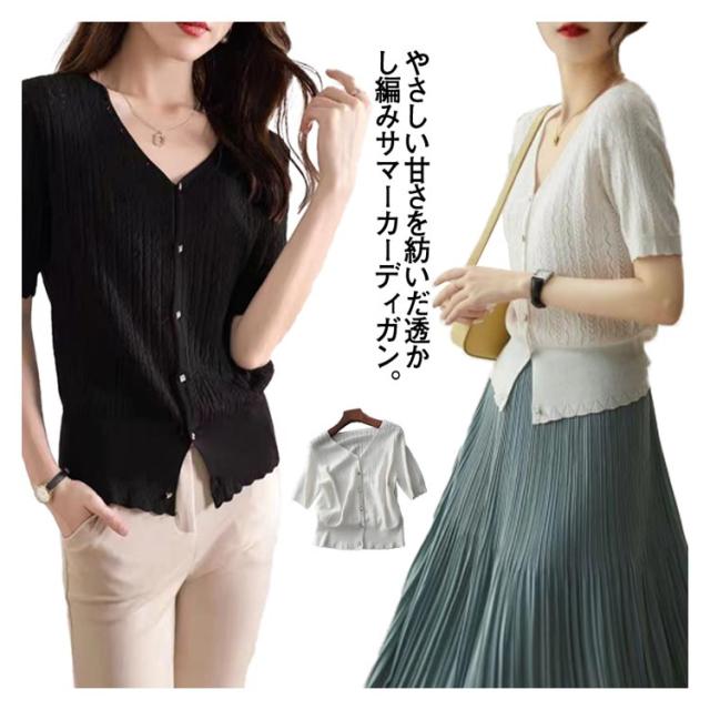UVカット レディース カーディガン 送料無料 接触冷感 サマーニット ニットトップス 半袖ニット 無地 大人 トップス 夏ニット 体型カバー カジュアル オフィス ルームウェア 薄手 無地 Vネック ショート丈 可愛い