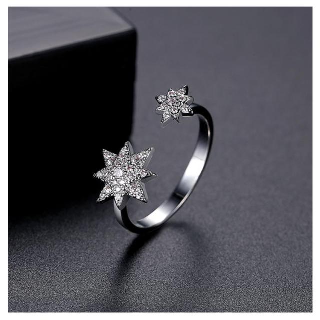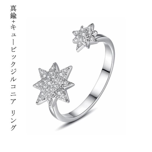 送料無料 リング レディース 指輪 キュービックジルコニア ホワイト 真鍮 シルバー 可愛い かわいい カジュアル モチーフ スター 星 フリーサイズ 大人気 可愛い かわいい おしゃれ