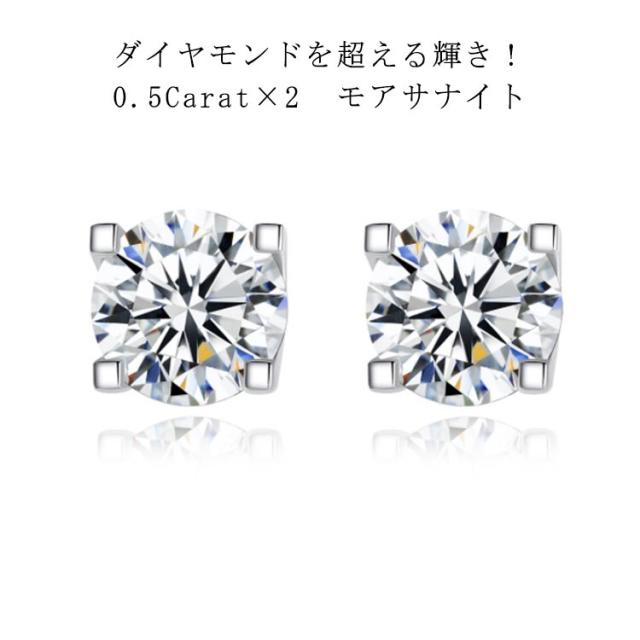 【送料無料】 ピアス モアサナイト 両耳用 0.5Carat×2 モアサナイト 中粒 一粒 4本爪 シルバー925 金属アレルギー対応 アクセサリー ジュエリー ホワイト 白 シルバー 大人気 スタッド ラウンド 定番 シンプル 耳飾り 上品 大人 通勤 彼女 妻 プレゼント 誕生日