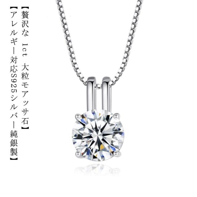 送料無料 ネックレス 1Carat モアサナイト ネックレス ひと粒 一粒 シンプル シルバー925 4爪 引き輪 40+5cm アジャスター ホワイト シルバー 大人気 ベネチアンチェーン ラウンド 大粒 一粒 定番 女性 プレゼント 30代 40代 50代 結婚式 ブランド 母の日 ギフト
