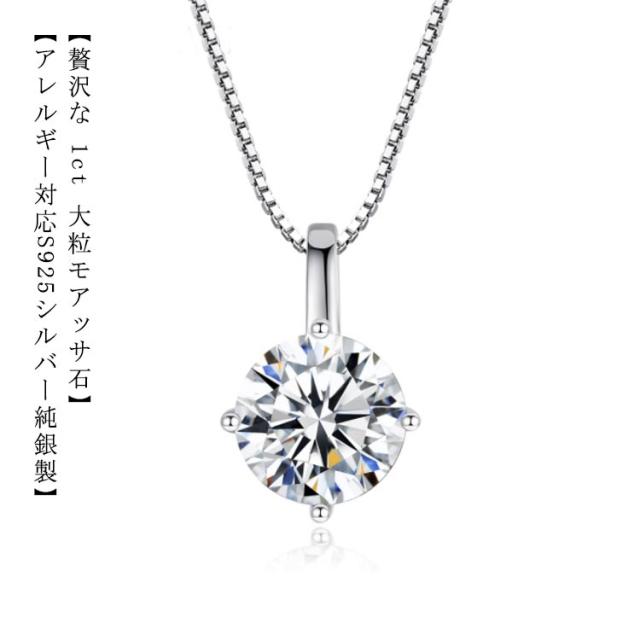 送料無料 ネックレス 1Carat モアサナイト ネックレス ひと粒 一粒 シンプル シルバー925 4爪 引き輪 40+5cm アジャスター ホワイト シルバー 大人気 ベネチアンチェーン ラウンド 大粒 一粒 定番 女性 プレゼント 30代 40代 50代 結婚式 ブランド 母の日 ギフト