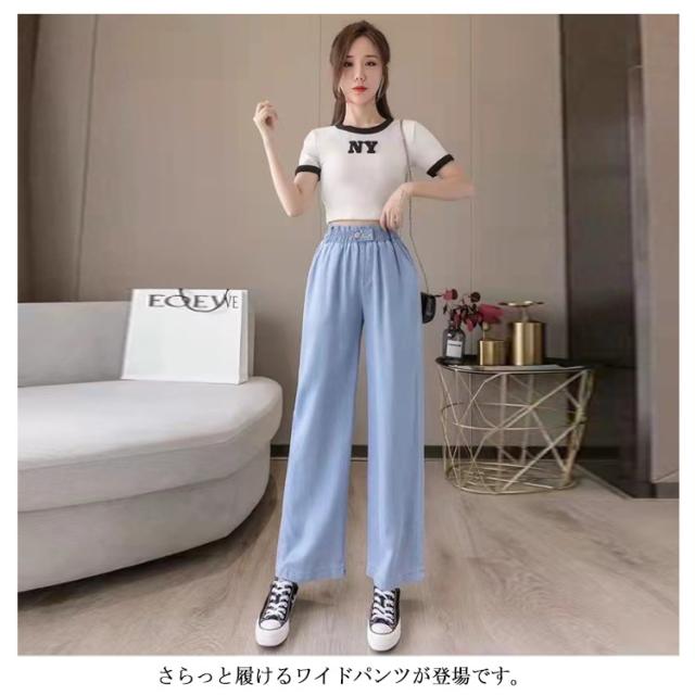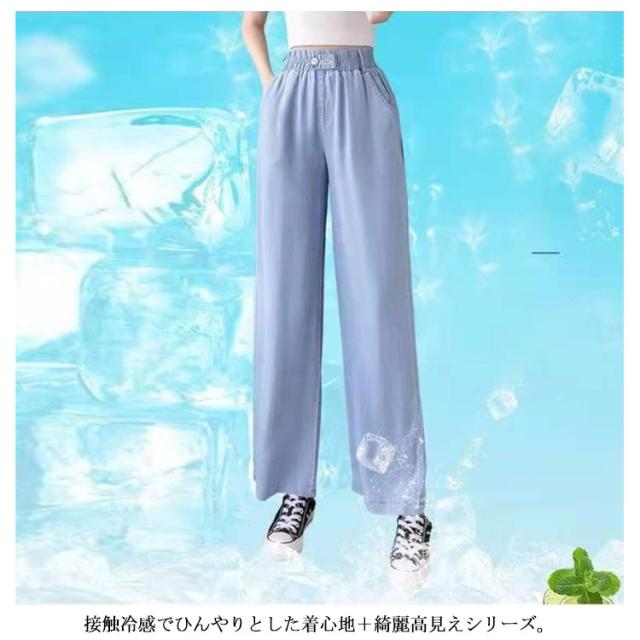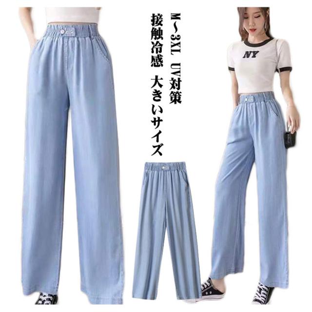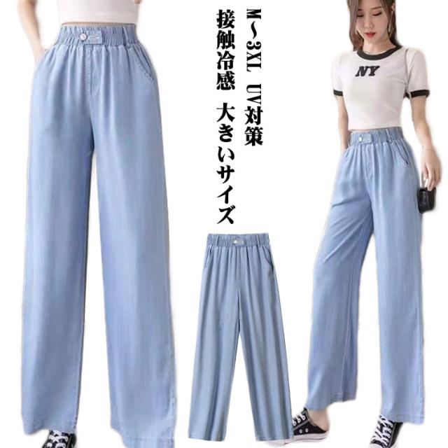 ワイドパンツ レディース デニムパンツ 秋 パンツ 春夏 デニム 接触冷感 大きいサイズ ウエストゴム ボトムス ひんやりドレープパンツ ロングパンツ ひんやり ドレープパンツ UV対策 ゆったり 汗対策 体型カバー 楽ちん 送料無料
