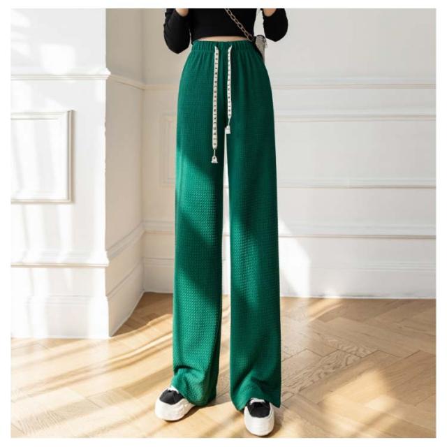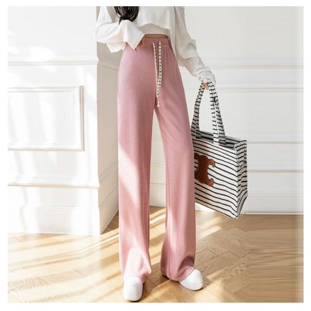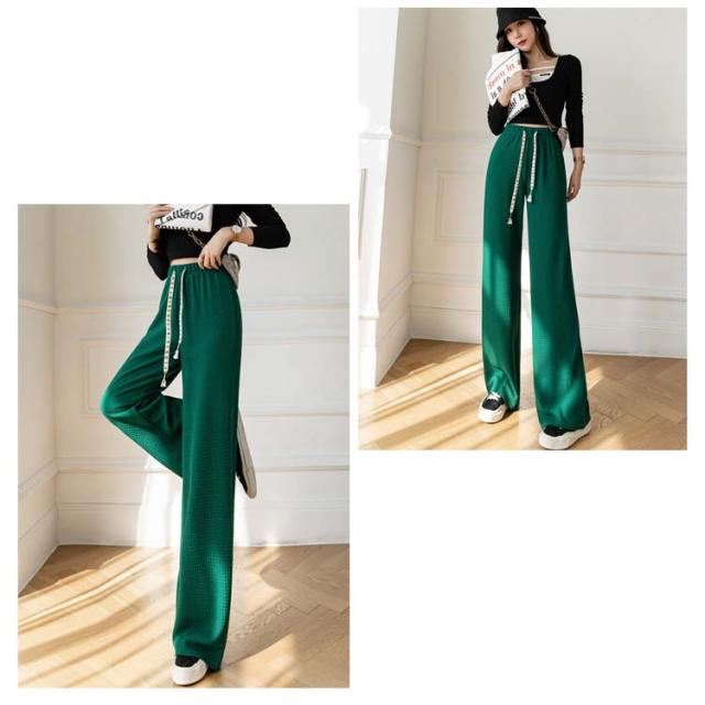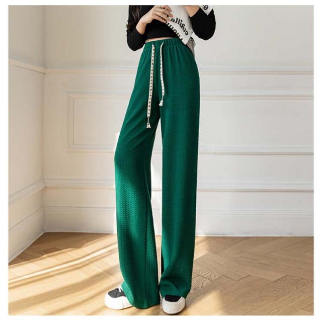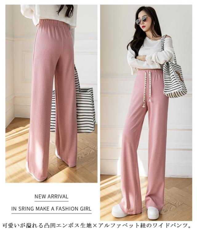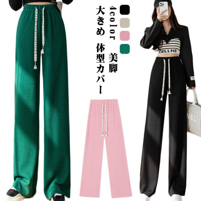 ワイドパンツ ボトムス ズボン ハイウエスト 美脚 さらてろ パンツ レディース 凸凹 エンボス ウエストゴム 楽ちん ゆったり 大きめ 体型カバー 春 夏 秋 おしゃれ 流行 大人可愛い 部屋着 韓国ファション 送料無料