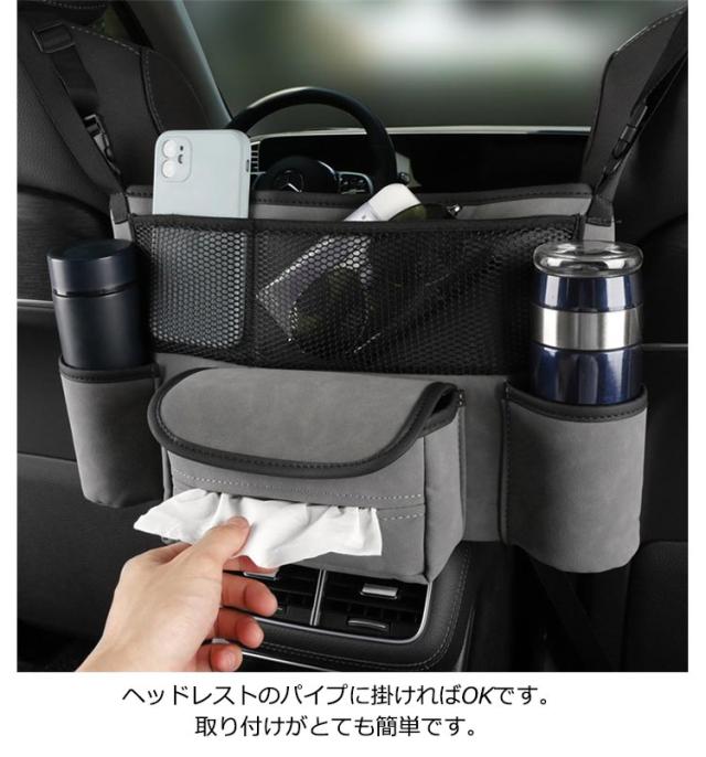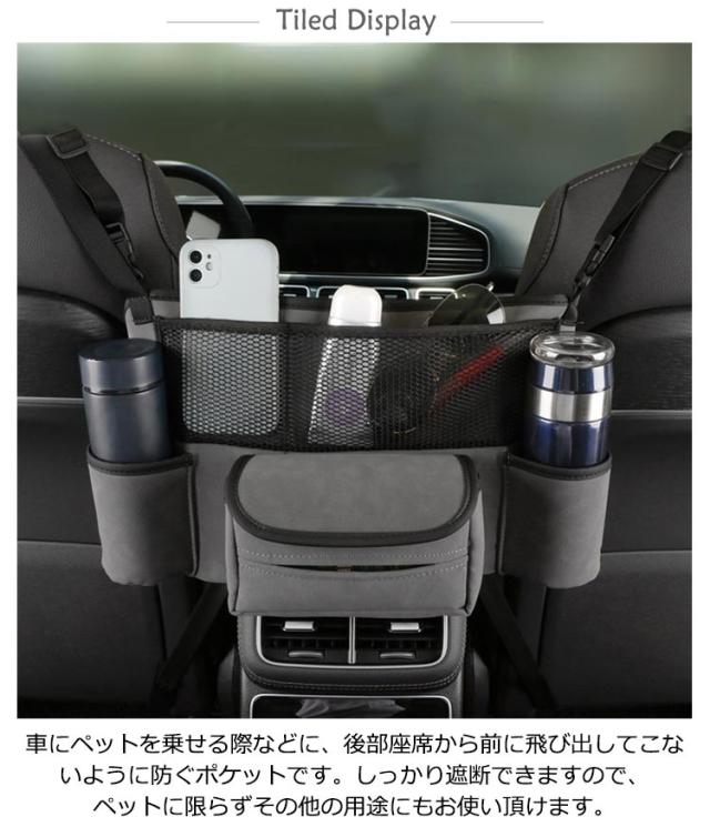 | 全4色!車内収納バッグ。カバン、携帯、iPad、ティッシュ、傘、眼鏡、手帳、雑誌、本等に適用します。 車にペットを乗せる際などに、後部座席から前に飛び出してこないように防ぐポケットです。しっかり遮断できますので、ペットに限らずその他の用途にもお使い頂けます。 高品質のPUレザーを採用して、耐久性があります。 ヘッドレストのパイプに掛ければOKです。取り付けがとても簡単です。 取付手順:1.調節ベルトを運転席と助手席のヘッドレストに取付け。3.ベルト長さを調節。4.アームレストのフタを開く、バッグ底面のマジックテープで、フタにバッグを設置。6.バッグが動かないよう、して、完了。 | |