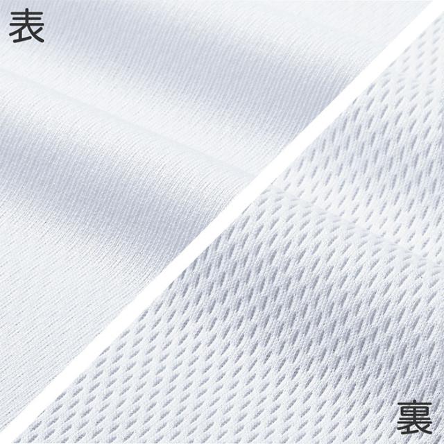 Vネックフライス編みの衿、サイドスリット付きのノースリーブシャツ。吸汗速乾ポリ100%、裏表切り替え生地でスポーツ感があります。伸縮性のあるウーリー糸を使用しており、引っ張りにも強くなっています。