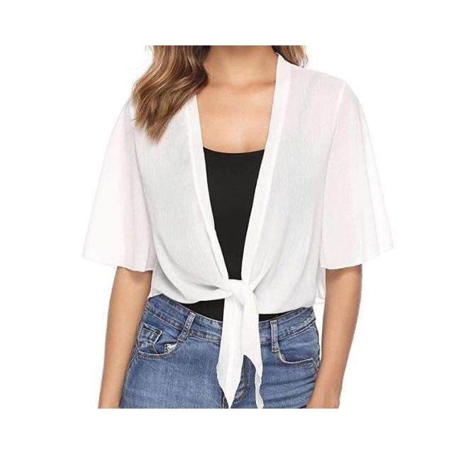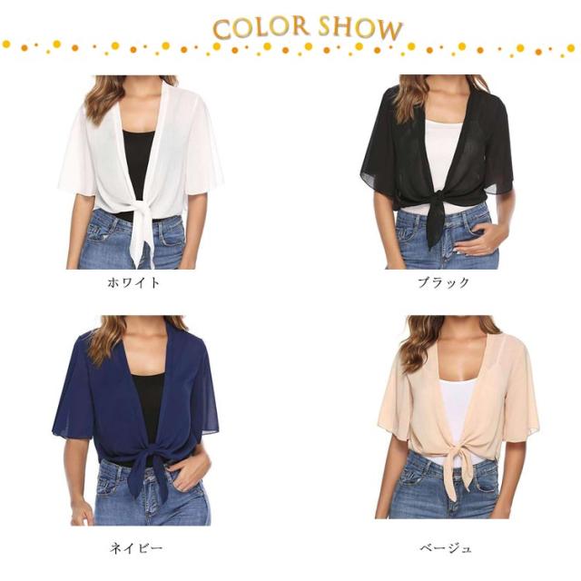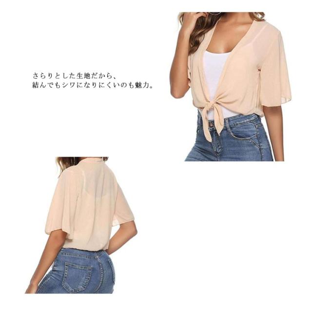 前結び ショート丈 ボレロ ボレロカーディガン ショート丈 シフォンブラウス レディース 半袖 フレア袖丈 シアー カーディガン ボレロ 透け感 シャツブラウス 前結び ブラウス トップス 春 夏 春物 春服 送料無料