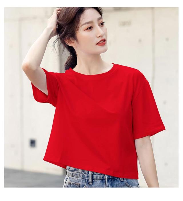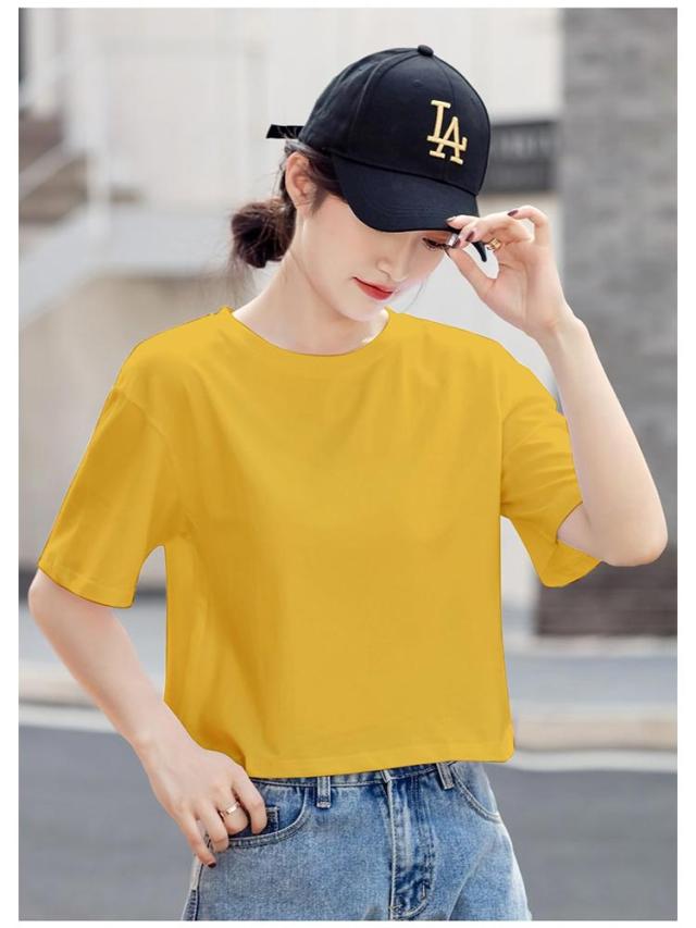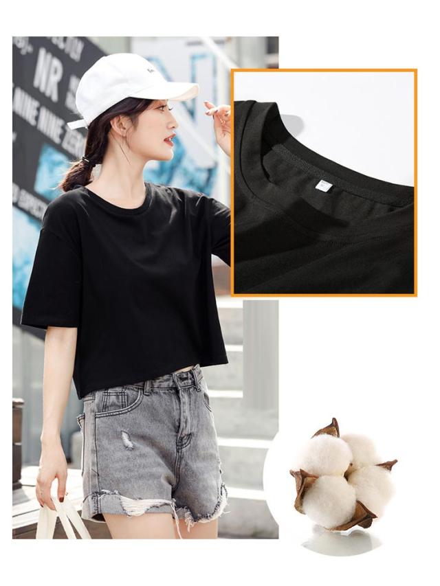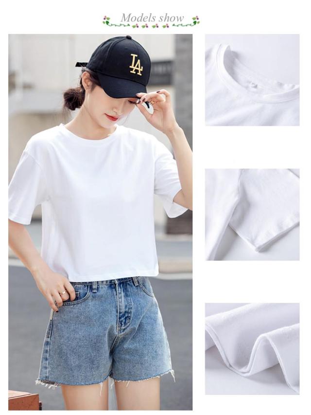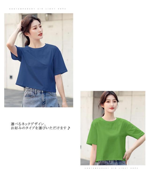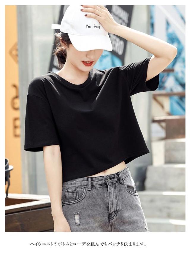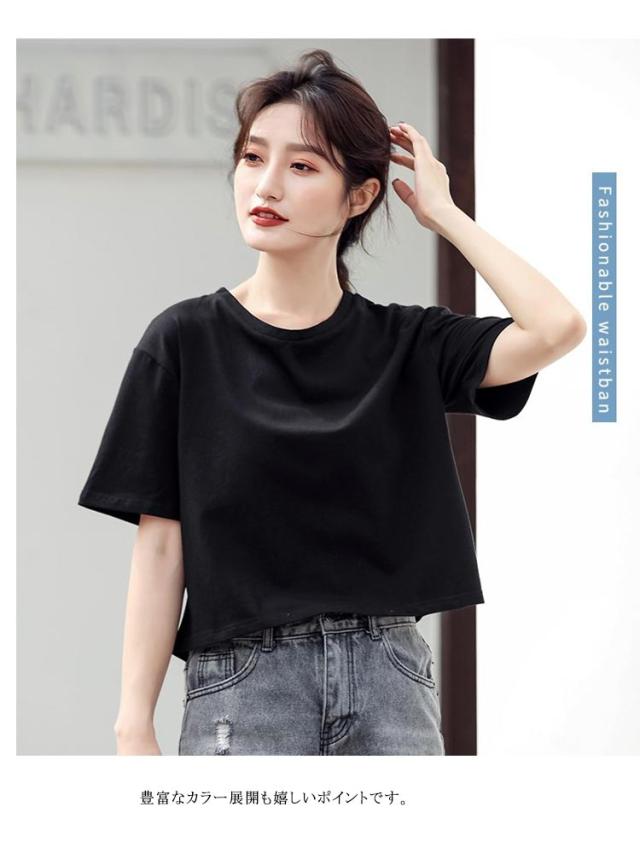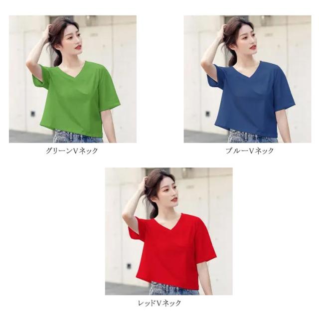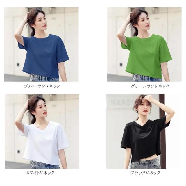 ショートTシャツ レディース カットソー トップス 半袖tシャツ ショート丈 おしゃれ ゆったり 体型カバー 短め 無地 大人可愛い 綿 コットン シンプル カジュアル 夏 春 秋 大きいサイズ Vネック ランドネック 通勤 通学 送料無料 S M L XL 2XL