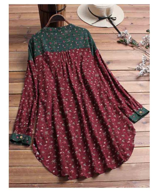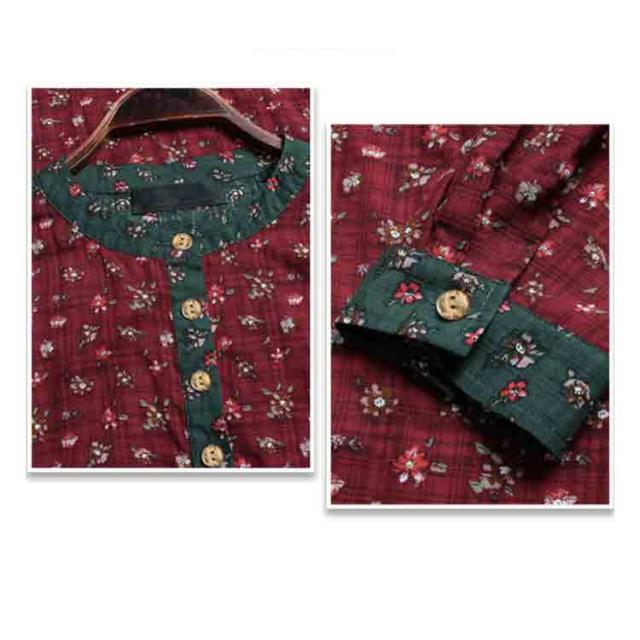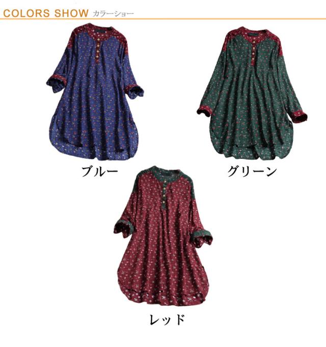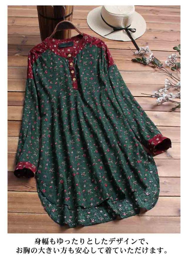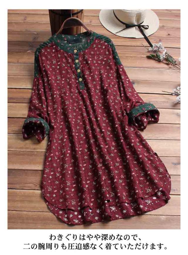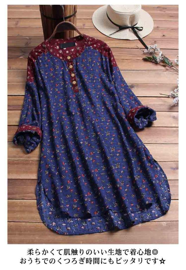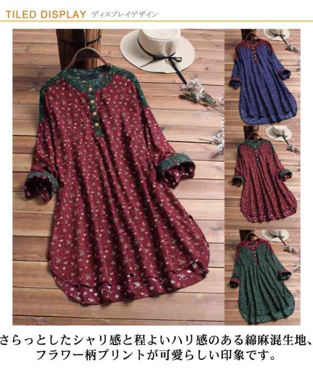 綿麻混 プルオーバー チュニック シャツ ロングシャツ チュニック シャツ ワンピース ブラウス トップス 体型カバー チュニックワンピース 春 夏 秋 ゆったり 花柄 長袖 可愛い ゆったり 長袖 大きいサイズ レディース