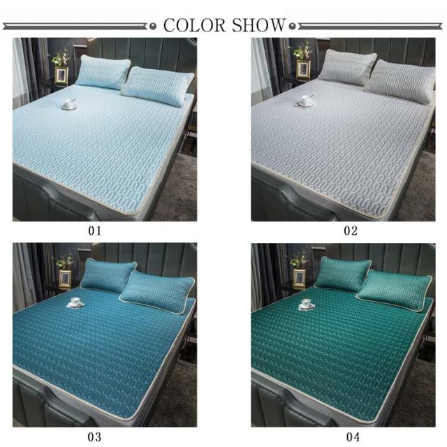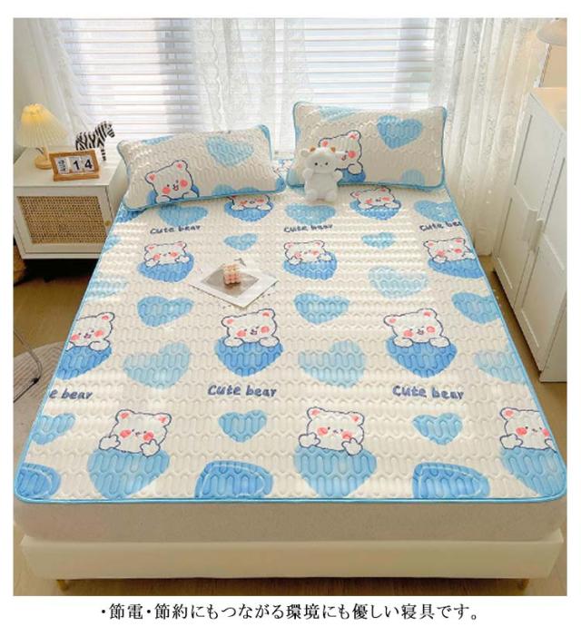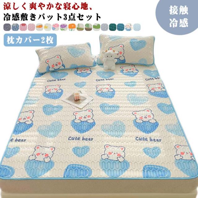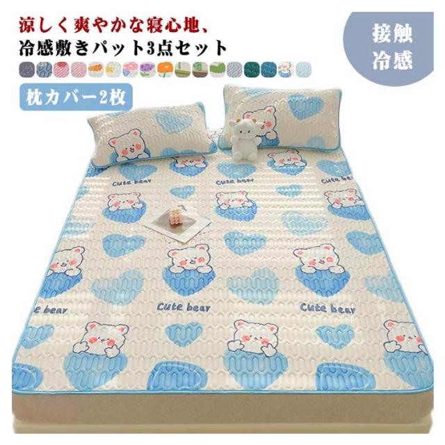 敷きパット 冷感 3点セット 枕カバー2枚 ひんやりマット ラテックス 接触冷感 敷きパッドシーツ 洗える 防ダニ 涼感 寝具 暑さ対策 通気性 涼しい 省エネ 滑り止め 全17柄