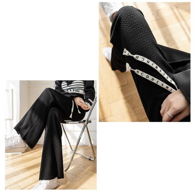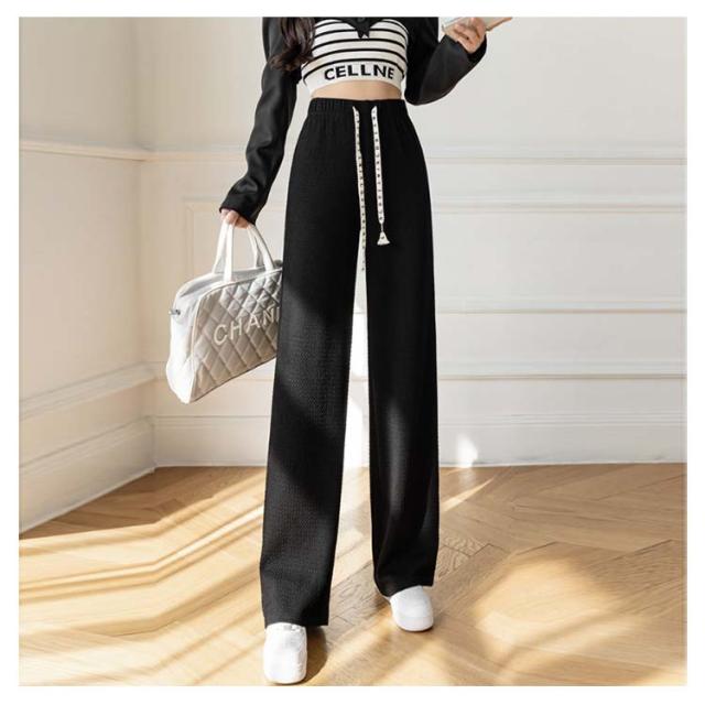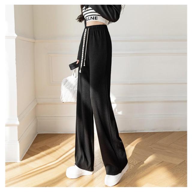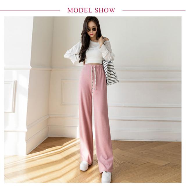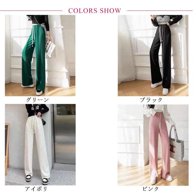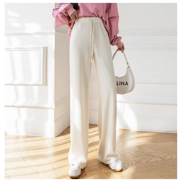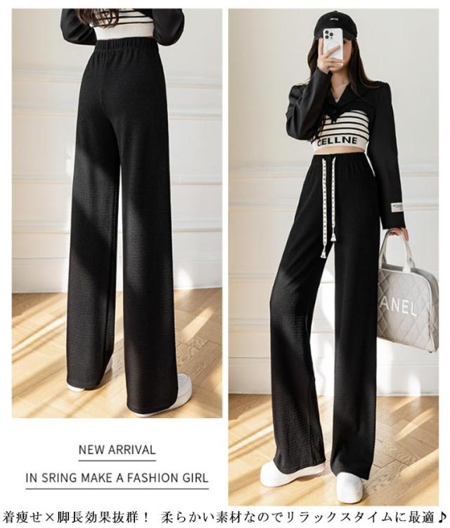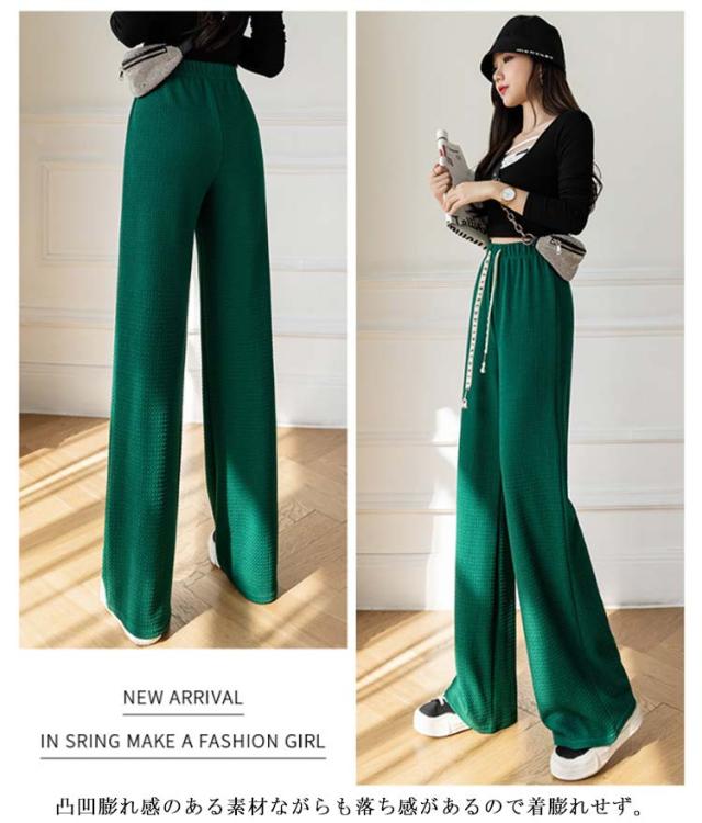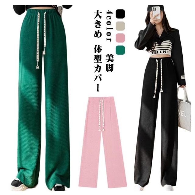 凸凹 ワイドパンツ 美脚 楽ちん ハイウエスト おしゃれ さらてろ レディース ボトムス エンボス ウエストゴム ズボン ゆったり 韓国ファション 体型カバー 春 夏 秋 大きめ 流行 大人可愛い 部屋着 パンツ