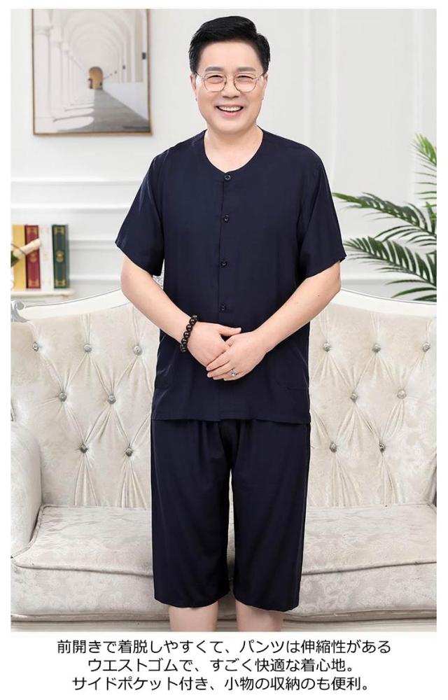 | 肌に優しいコットン生地を使用、通気性と吸汗性に優れて、汗をかいてもサラッとして、柔らかくて寝心地が良い。 シンプルなデザインとなカラーに仕上がっており、若い方でも年齢の高い方でも着られる。 前開きで着脱しやすくて、パンツは伸縮性があるウエストゴムで、すごく快適な着心地。サイドポケット付き、小物の収納のも便利。 ふんわり柔らかでお肌への負担も少なく、乾燥肌など、肌が敏感な人にもオススメ。 肌触りの良いの半袖パジャマ。ズボンも涼しい膝丈です。 お誕生日プレゼントや父の日ギフトなど、贈り物にも最適! | |