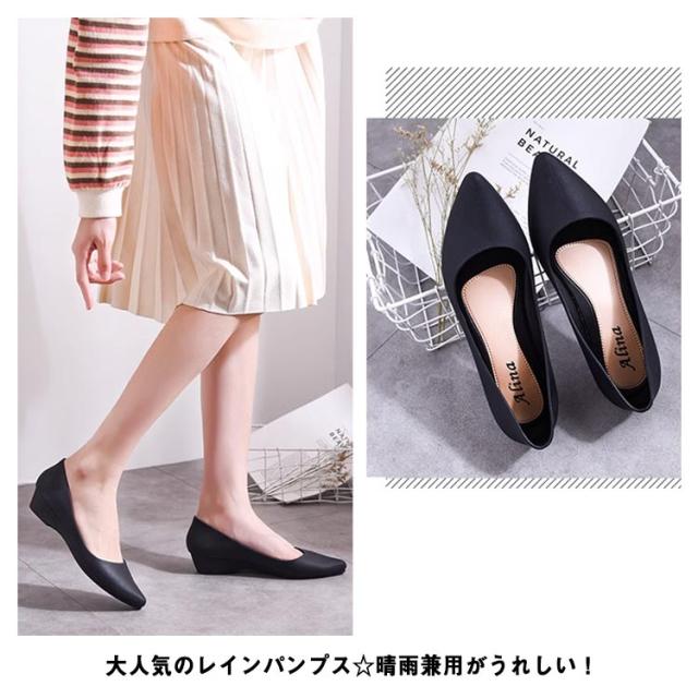 防水 パンプス 歩きやすい ポインテッドトゥ パンプス レイン パンプス レディース レインパンプス 晴雨兼用 レインシューズ パンプス 雨靴 おしゃれ 通勤 ローヒール パンプス ウェッジソール 梅雨 オフィス 滑り止め
