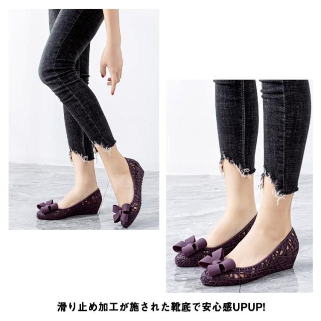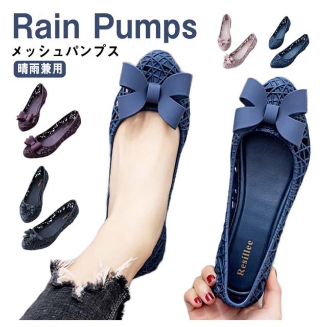 リボン パンプス 夏 メッシュ パンプス サンダル レイン パンプス レディース ローヒール パンプス 夏 パンプス レインパンプス 晴雨兼用 歩きやすい ウェッジソール ラウンドトゥ パンプス レインシューズ パンプス 雨靴 おしゃれ 通勤