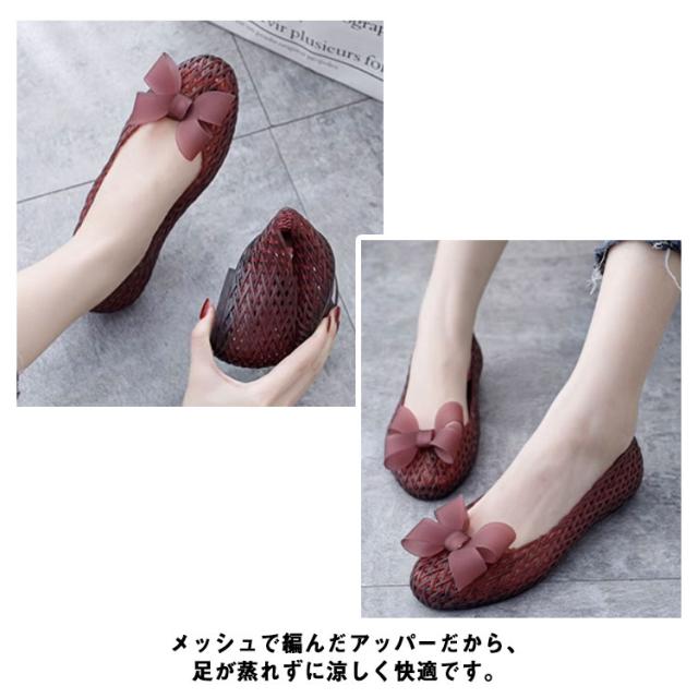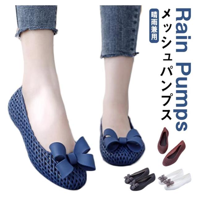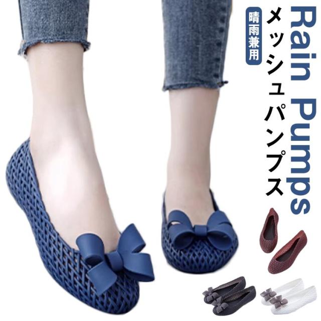 夏 ぺたんこ パンプス メッシュ パンプス サンダル レインパンプス 晴雨兼用 歩きやすい リボン パンプス 夏 レイン パンプス レディース ローヒール パンプス 夏 パンプス ラウンドトゥ パンプス レインシューズ パンプス 雨靴 おしゃれ