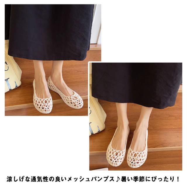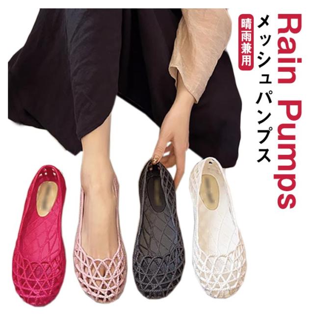 メッシュ パンプス メッシュ サンダル レインパンプス 晴雨兼用 レディース 夏 レイン パンプス ぺたんこ パンプス 歩きやすい レイン サンダル サマーサンダル ビーチサンダル ローヒール パンプス 夏 ラウンドトゥ レインシューズ