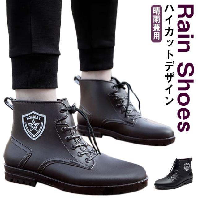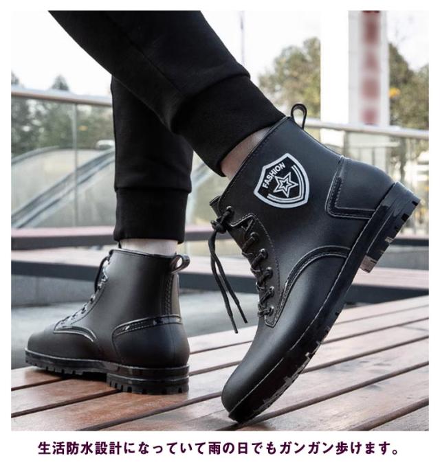 ハイカット スニーカー レインシューズ ハイカット メンズ レインブーツ レイン スニーカー おしゃれ 防水 レースアップ スニーカー 長靴 雨靴 防水 スニーカー シューズ 晴雨兼用 スニーカー風 レインシューズ 梅雨 防滑 作業靴