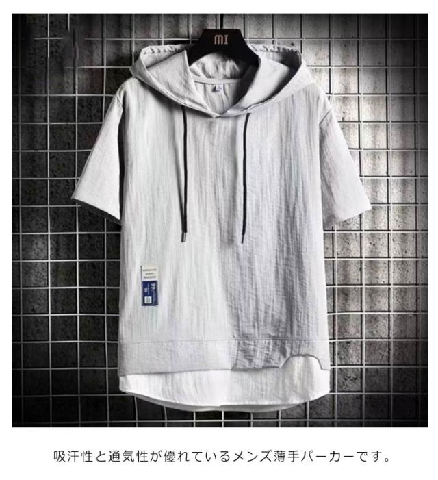 | スタイルがカッコよく見える半袖パーカーが登場。 通気性に優れ、常にドライに保ちます。涼しい着心地で夏でも快適にオシャレが楽しめます。 ゆったりとしたシルエットで、夏に一枚だけ着ても快適です。 吸汗性と通気性が優れているメンズ薄手パーカーです。 シンプルだけど裾のところの切り替えデザインが、おしゃれで一枚で重ね着に見える半袖パーカーです。 | |