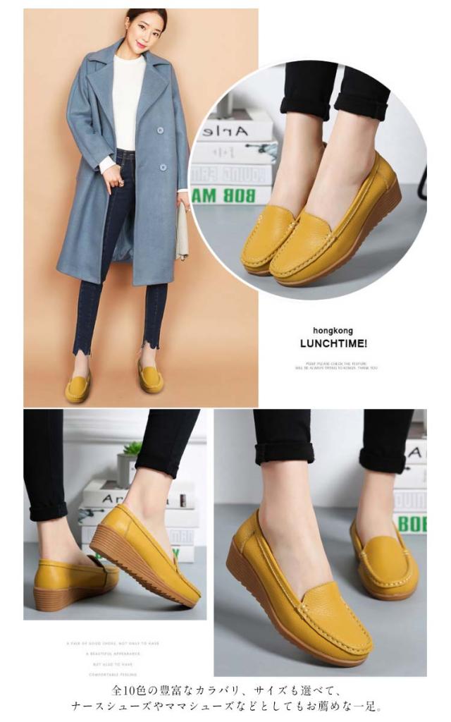 ナースシューズ レディース ローファー 送料無料 本革 モカシン シューズ 牛革 革靴 パンプス フラットシューズ スリッポン ママシューズ コンフォート 厚底 柔らかい 美脚 春 秋 幅広