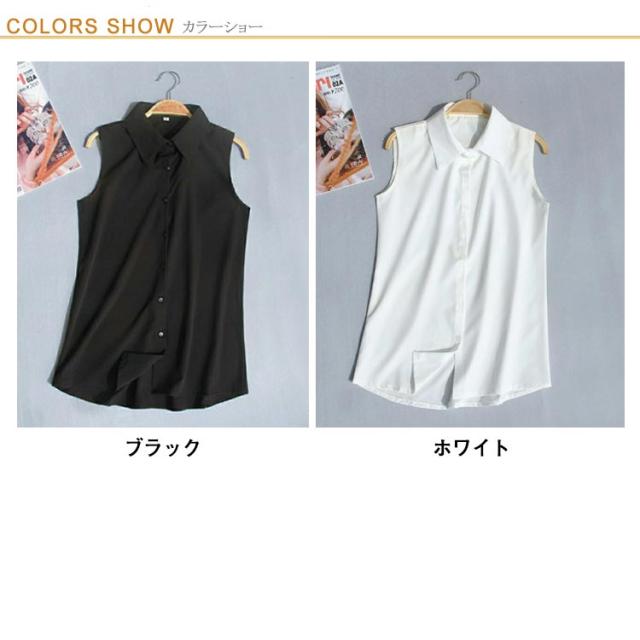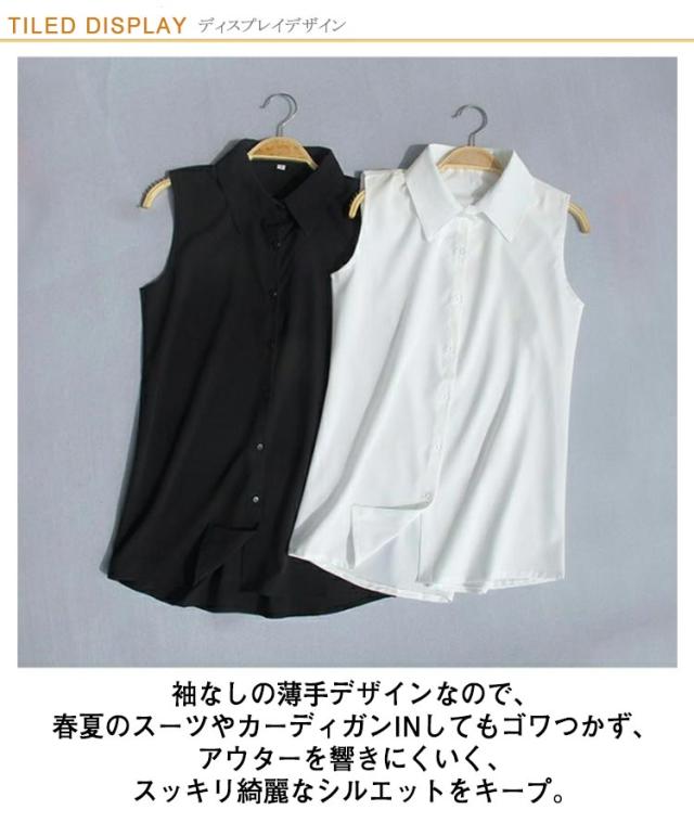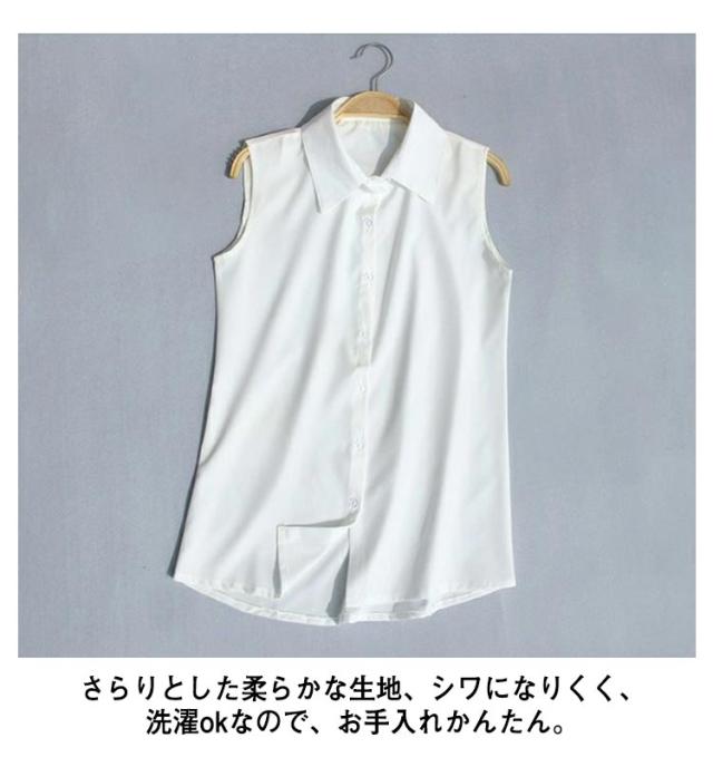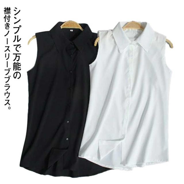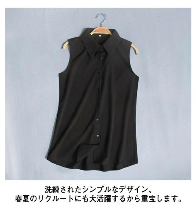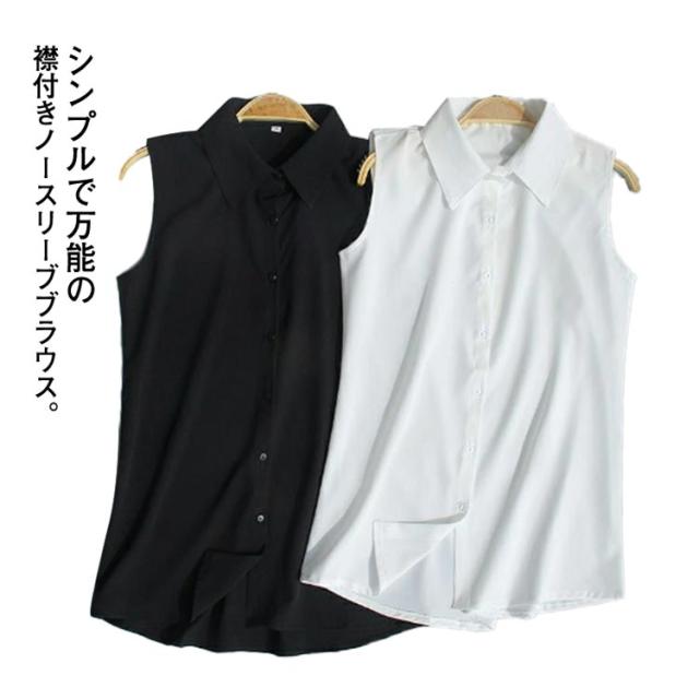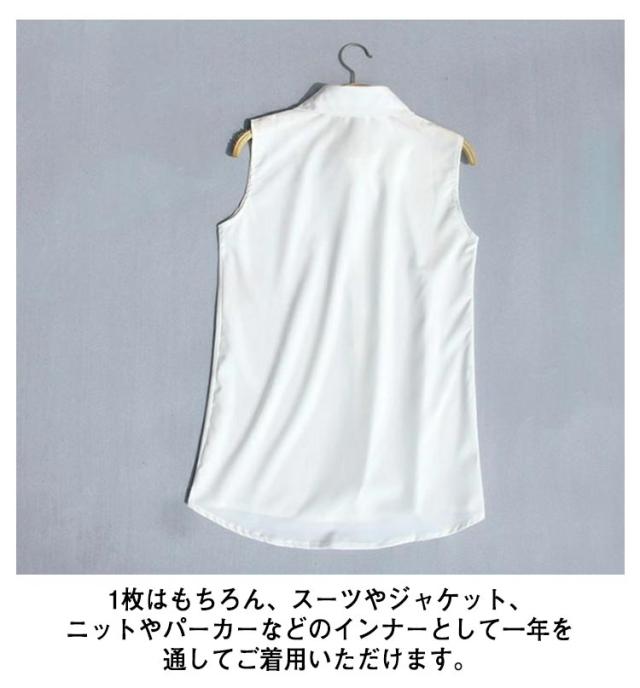 襟付き ノースリーブ ブラウス 送料無料 袖なし シャツブラウス レディース 白 黒 夏 薄手 スーツインナー タンクトップ Yシャツ とろみシャツ OL 通勤 シフォンシャツ シンプル 無地 夏物 夏物 オフィス