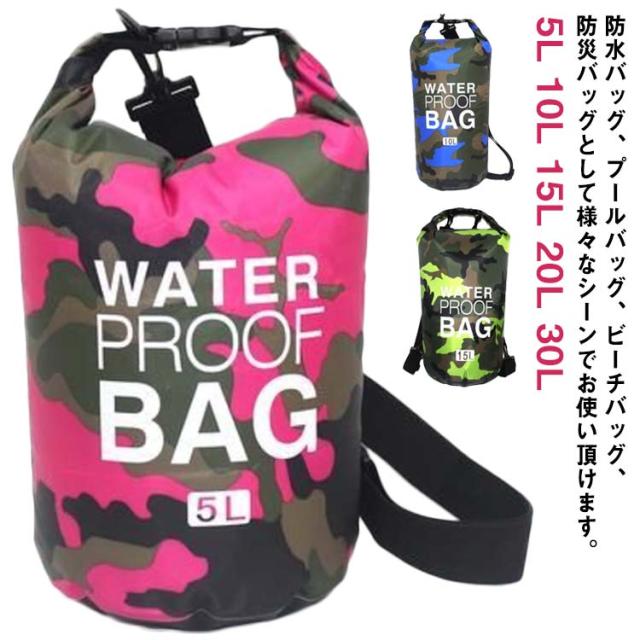 5L 10L 15L 20L 30L 防水バッグ 2way プール バック 防水 アウトドア 防水リュック 大容量 メンズ 収納バッグ 迷彩柄 多機能 ドラム型 ドライバッグ ダイビング プール 海水浴 マリンスポーツ スイミング 雨の日 肩掛け