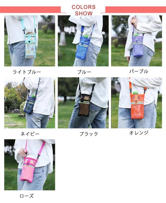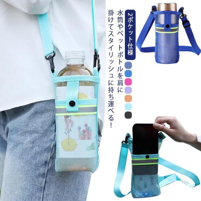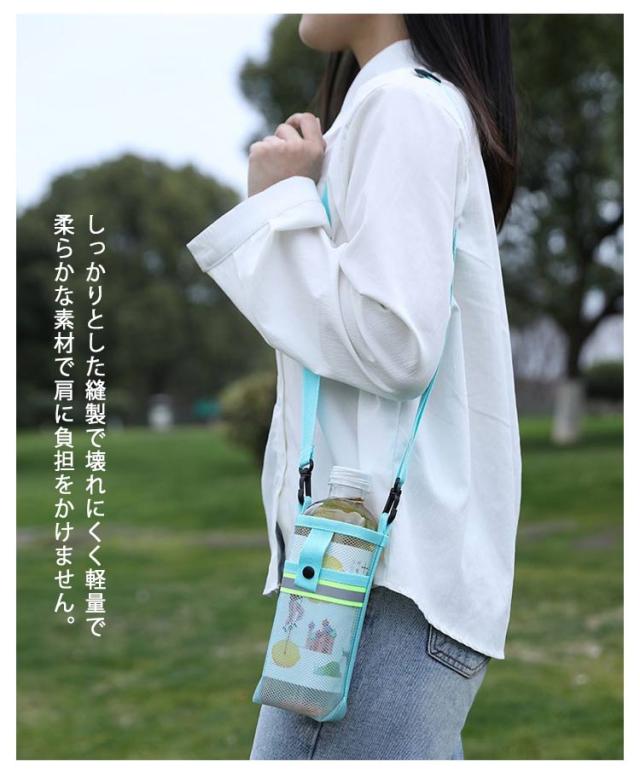 水筒カバー メッシュ ショルダー ボトルホルダー 水筒ケース 傘ケース 軽量 送料無料 肩掛け ペットボトル ホルダー 2ポケット仕様 女の子 子供用 ドリンクホルダー 散歩