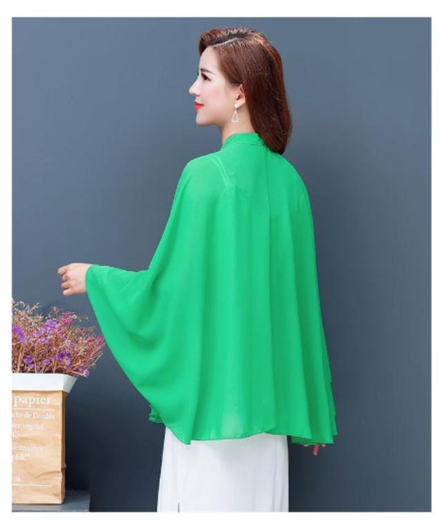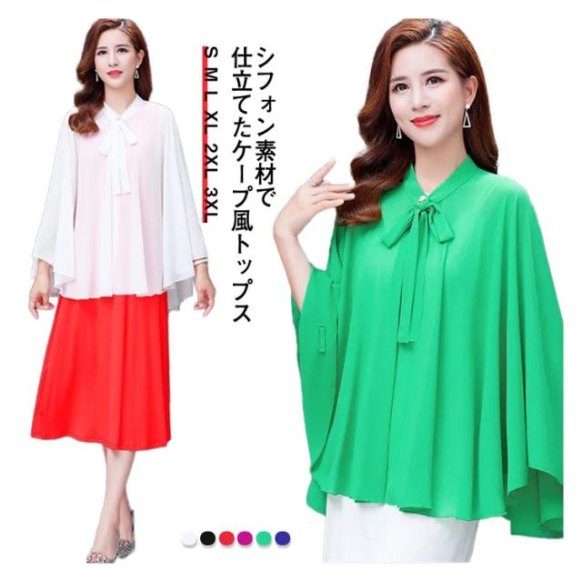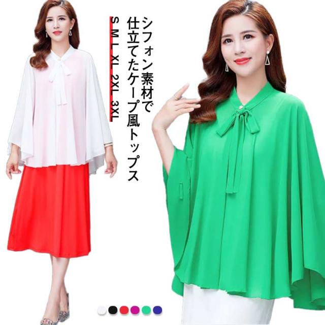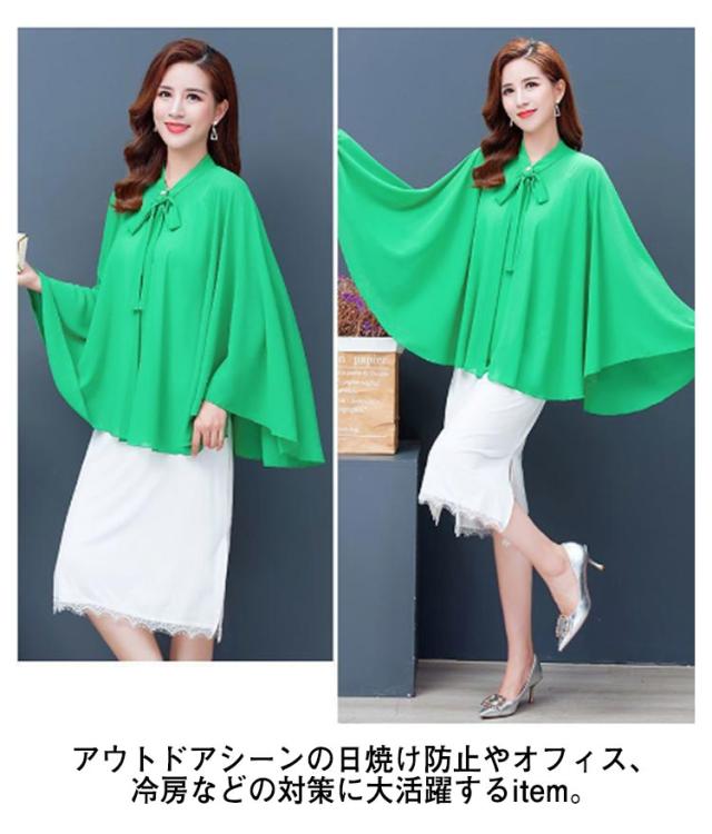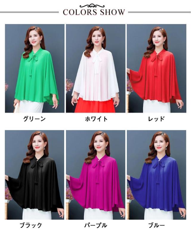 レディース トップス シフォン シフォンマント 日焼け防止 マント ケープ シフォン サマーカーディガン 羽織り 体カバー 袖なし リボン付き ドルマンシルエット シンプル 無地 春夏 送料無料 ホワイト ブラック レッド パープル グリーン ブルー
