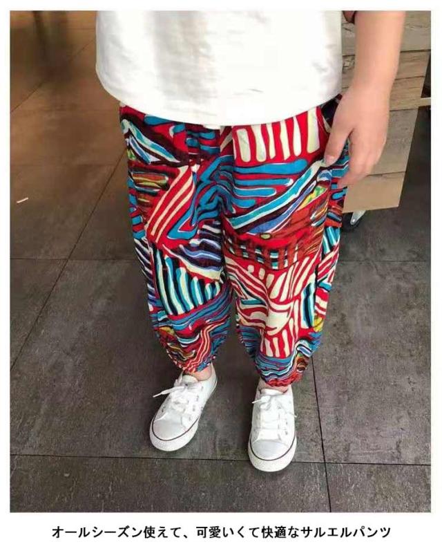 長ズボン 子供パンツ サルエルパンツ 大人 サルエル 花柄 冷感素材 蚊防ぐ 虫除け 薄手 キッズ ひんやり 接触冷感 九分丈 ルームパンツ パンツ ウエストゴム 通気性 柔らかい 防虫パンツ 無地 カジュアル ワイドパンツ ストレッチ 男の子 女の子 ボトムス 部屋着 送料無料