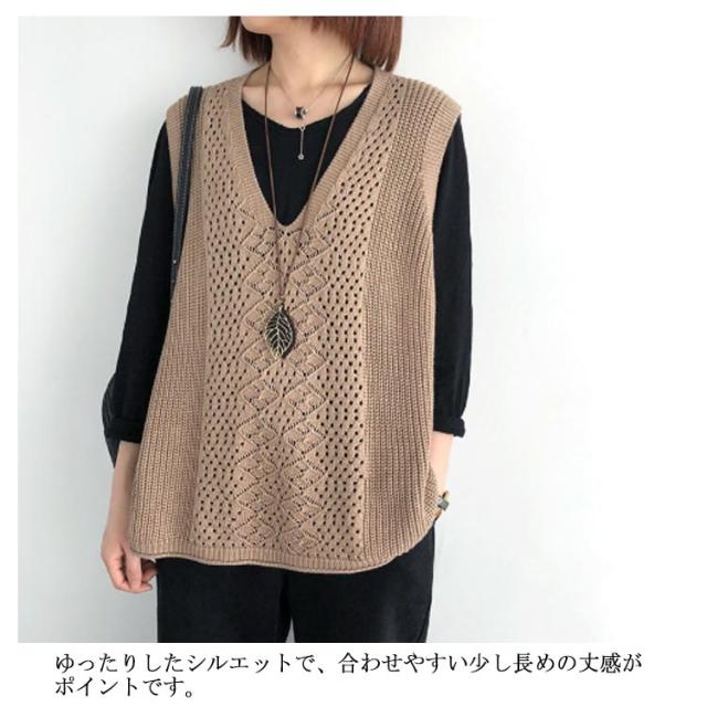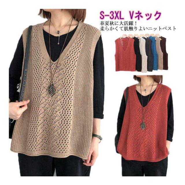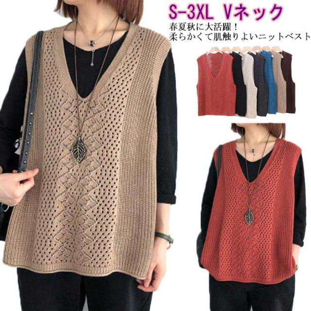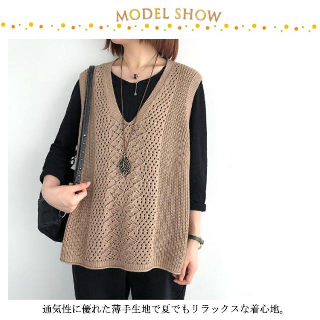 ニットベスト Vネック ノースリーブ ベスト サマーニット レディース プルオーバー ケーブル編み おしゃれ 夏 薄地 無地 ゆったり 体型カバー ミディアム丈 ストレッチ カジュアル レイヤード 重ね着 春 夏 秋 大きいサイズ 送料無料