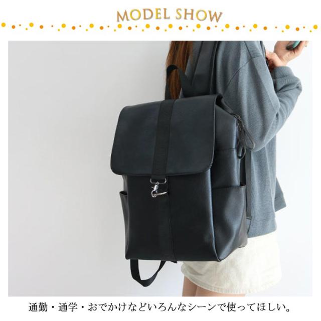 | デザイン性、機能性を兼ね備えたリュック 通勤・通学・おでかけなどいろんなシーンで使ってほしい。 大容量&収納力抜群、大きく開くメインポケットは出し入れが簡単です。 シンプルなデザイン、年齢を問わず幅広くご使用いただけます。 内側にも仕分けポケット付き、散らかりやすい小物などの収納にぴったり。 質の高いPU素材を採用する。お手入れ簡単にもうれしい♪ | |