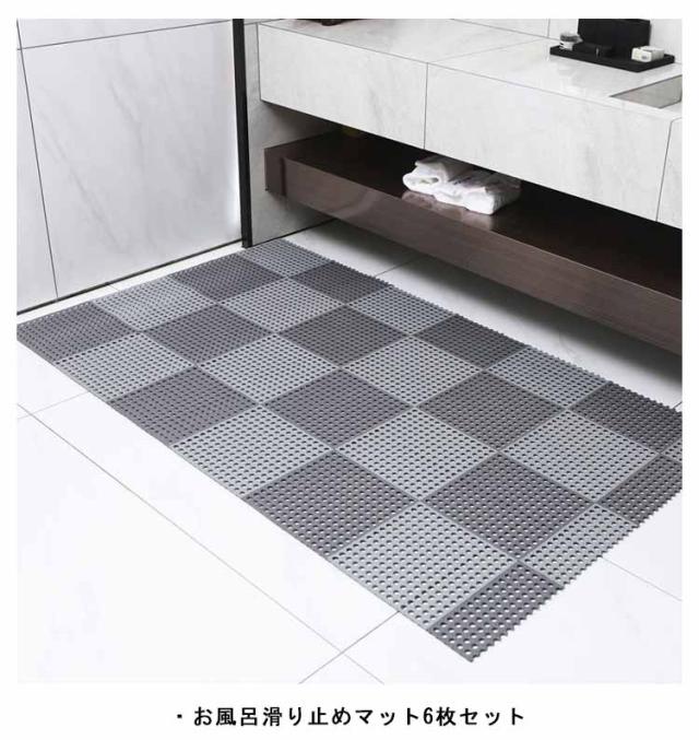 お風呂マット 浴室マット 6枚セット 滑り止めマット 洗い場マット 転倒防止 30cm×30cm 介護用品 滑り止め 赤ちゃん お年寄り 妊婦 排水 防カビ 床シート DIYマット レイアウト自由 洗面所 脱衣所 プール トイレ キッチン 厨房