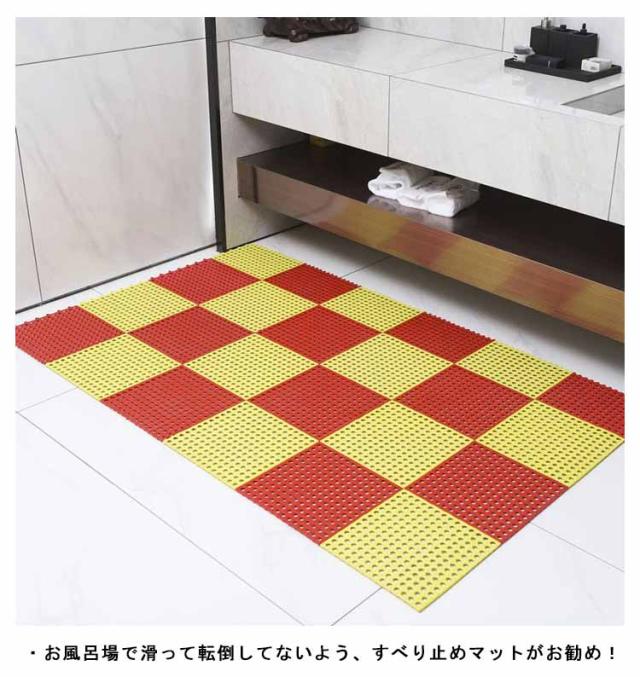 | ・お風呂滑り止めマット6枚セット ・お風呂場で滑って転倒してないよう、すべり止めマットがお勧め! ・小さな丸穴がたくさん空いており、水や石鹸の泡が足元に溜まりません。 ・表面にはスベリ止め効果の高い表面加工を施しています。 ・特に小さなお子様やお年寄りの方、要介護者の方がいらっしゃるご家庭での転倒予防のご配慮に。 ・冬場ではお風呂場のヒンヤリが緩和するのでヒートショック対策にもなります。 ・ジョイントで繋いでお好みのサイズに◎ | |