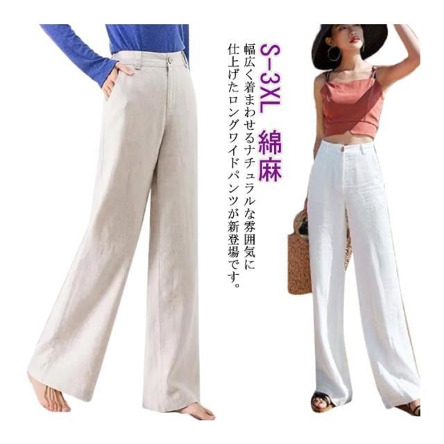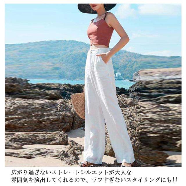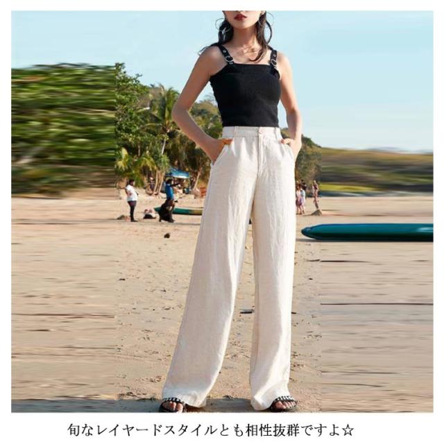 ワイドストレートパンツ 送料無料 レディース リネンパンツ 春夏 ワイドパンツ ストレートパンツ 綿麻 ハイウエスト ロングパンツ バックゴム 薄手 ガウチョパンツ ロング丈 ゆったり ナチュラル 夏 ボトムス 20代 30代 40代