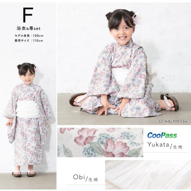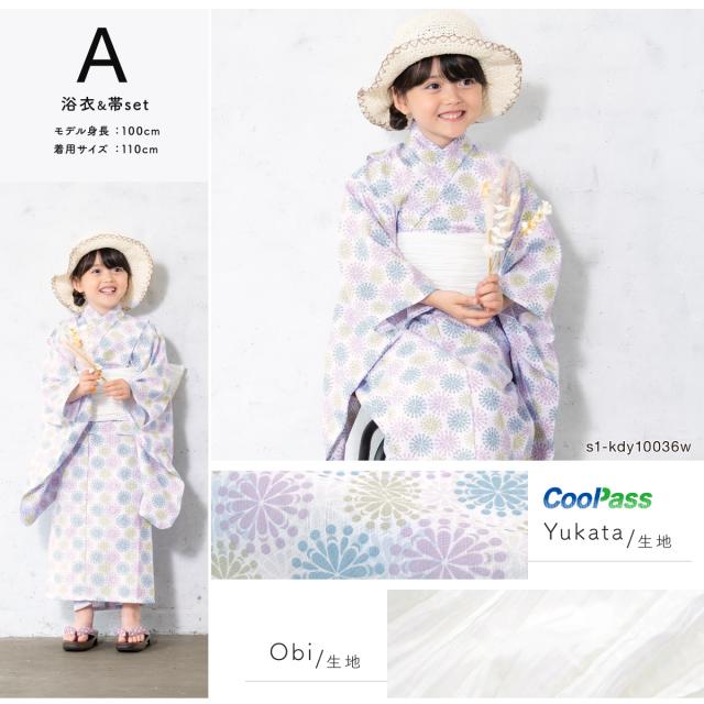 浴衣 子供 女の子 セット キッズ 浴衣セット 兵児帯 2023新作 吸水速乾 CoolPass 2点セット モダン 白系 紫 水色 ピンクパープル ブルーグレー 花火 マーガレット 花柄 帯 夏 110cm 120cm 130cm 140cm 送料無料