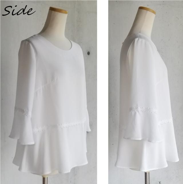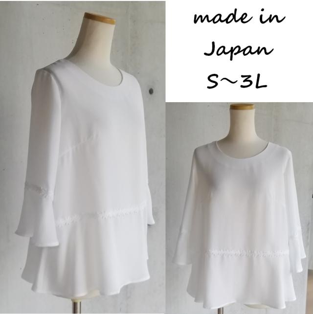 日本製 《M〜3L》小花レース使い ゆったりチュニックブラウス 124301
