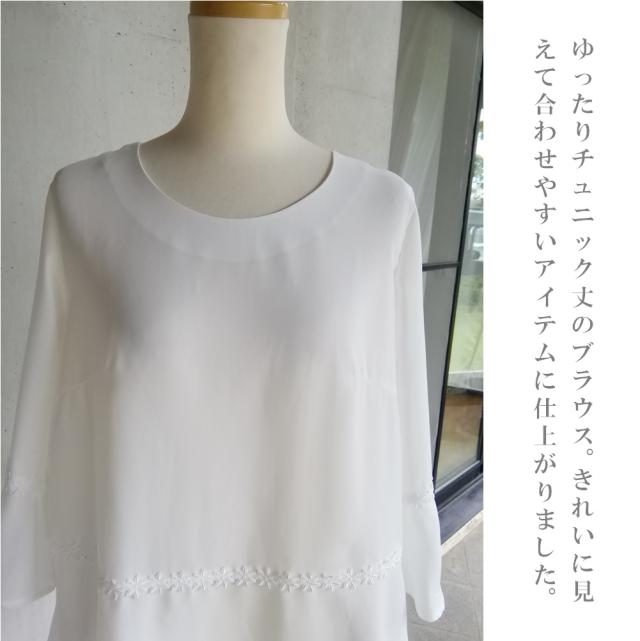 着やすくゆったりデザインのチュニックブラウスが白で登場です。