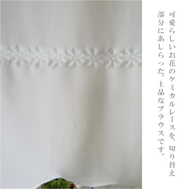 シンプルなデザインの中に、ケミカルレースの小花をあしらった、