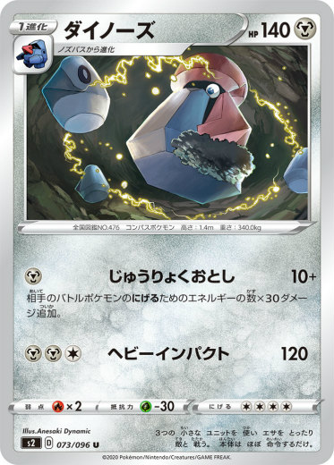 【プレイ用】 ポケモンカードゲーム S2 073/096 ダイノーズ 鋼 (U アンコモン) 拡張パック 反逆クラッシュ 【中古】