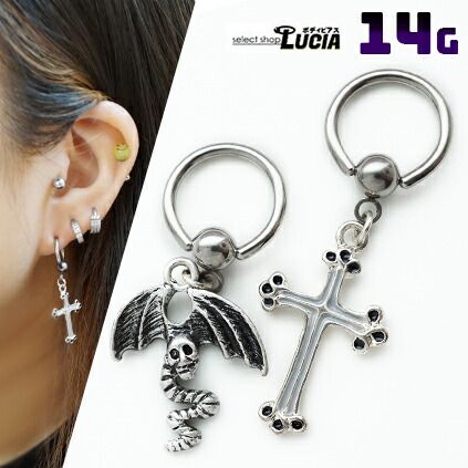 本日P2倍 14G ピアス ボディピアス キャプティブビーズリング スカル 十字架 クロス 揺れる かっこいい 金属アレルギー対応 316L 高品質 ステンレス メンズ