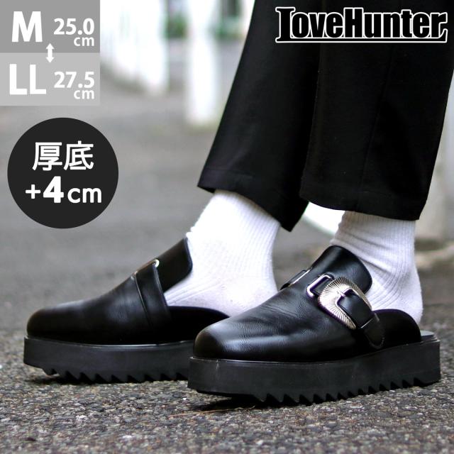サンダル サボサンダル つっかけ メンズ シューズ シャークソール 厚底 カジュアル ラフ 合成皮革 履きやすい 春 夏 4cmヒール No.1963 25.0cm-27.5cm 黒 ブラック LOVEHUNTER ラブハンター