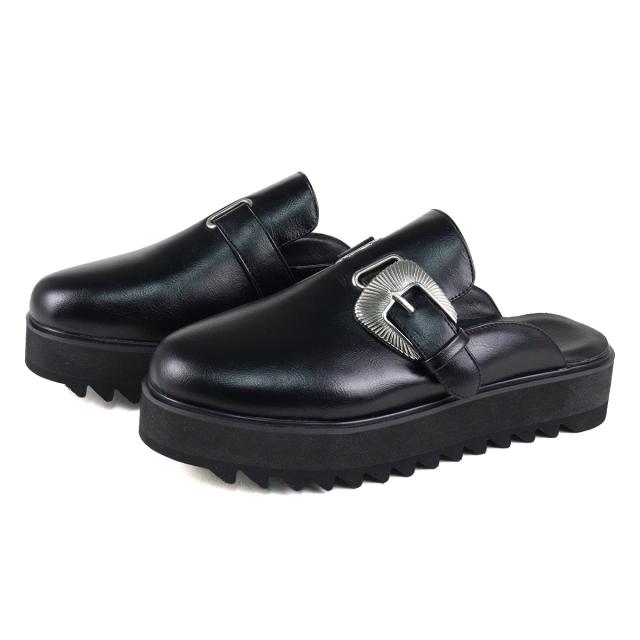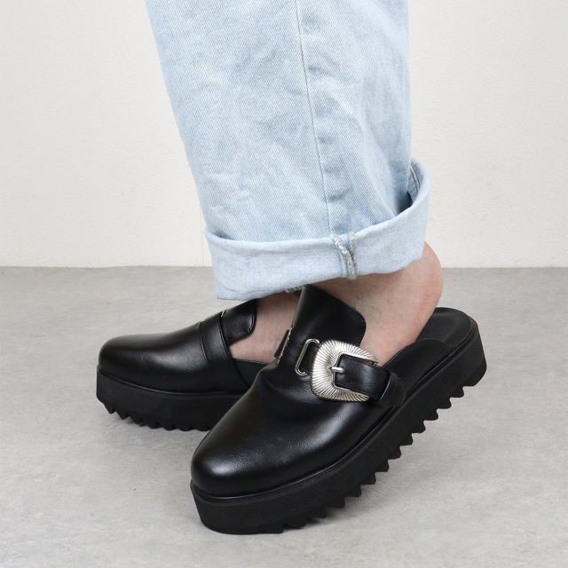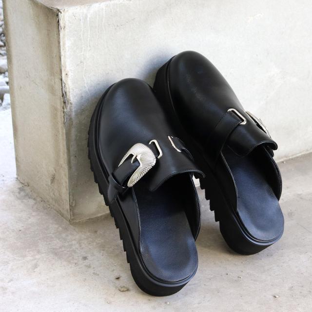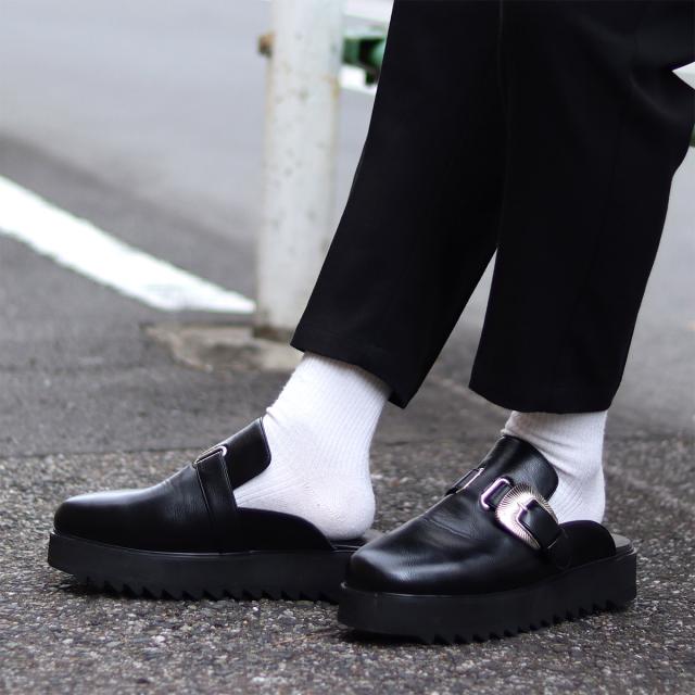 シンプルなクロッグサンダルに、大きいネイティブバックルを使用することで、存在感のある足元を演出します。