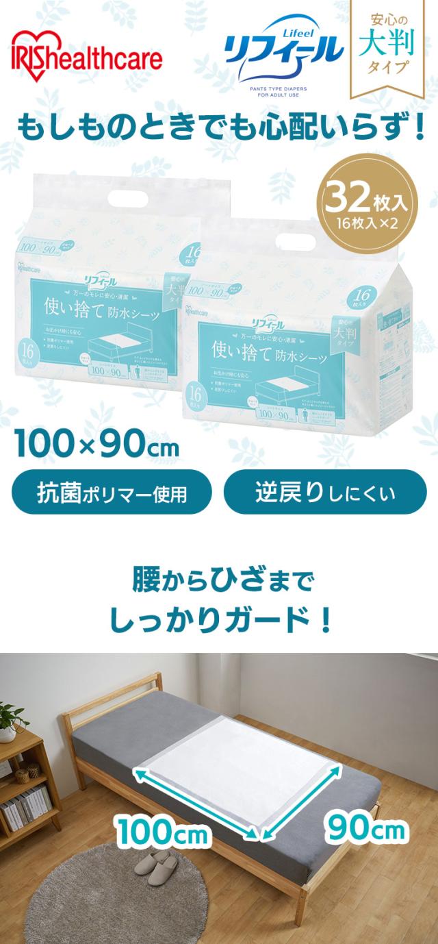防水シーツ 介護 介護用防水シーツ 32枚 16枚×2個 大判 100×90cm 使い捨て シーツ 防水シート おねしょ防水シート 介護用 おねしょシーツ 大人 高齢者 ベビー ペット ベッド 失禁 尿漏れ 介護用品 アイリスオーヤマ 使い捨て防水シーツ TS-S32 *