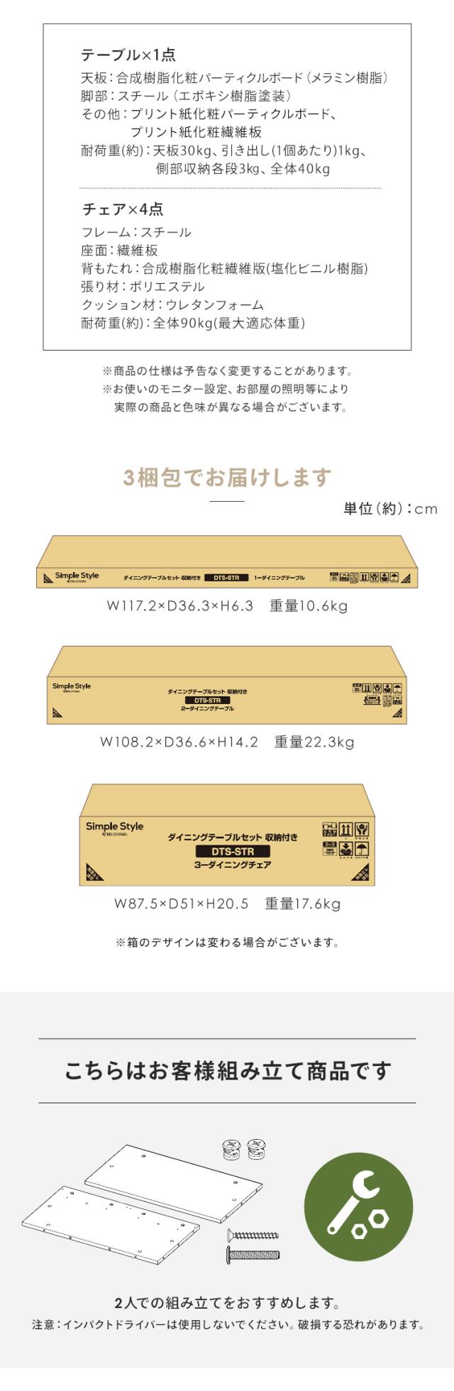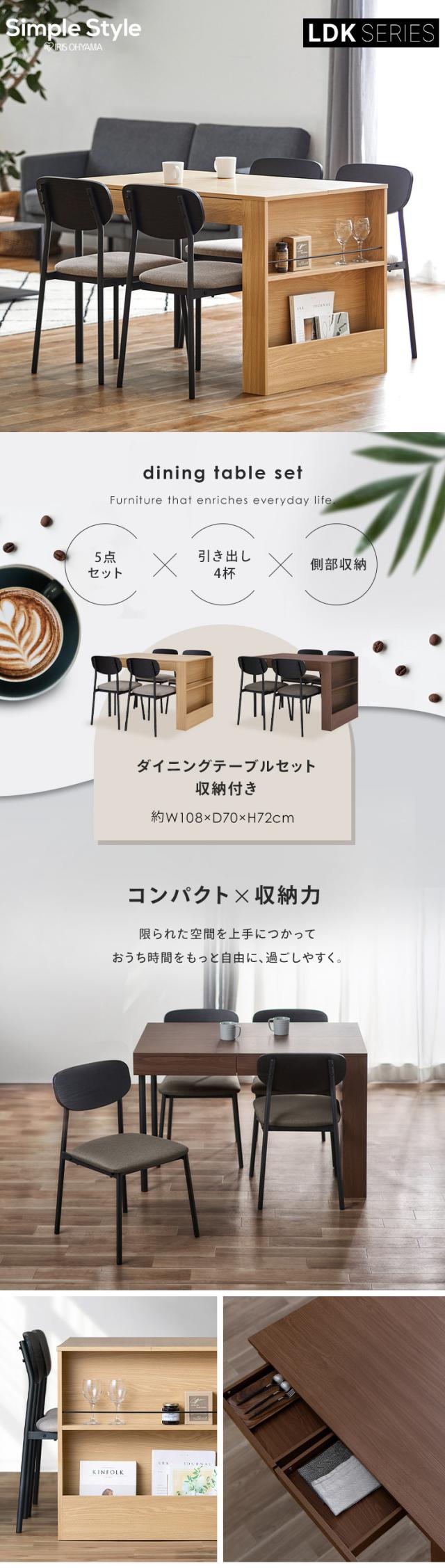 ダイニング セット 4人 5点 テーブル チェア LDK アイリスオーヤマ * DTS-STR イス 食卓 リビング おしゃれ コンパクト 引き出し 収納 ダイニングテーブル ダイニングチェア シンプル 椅子 モダン 幅108cm 棚付き 4人掛け ナチュラル 長方形