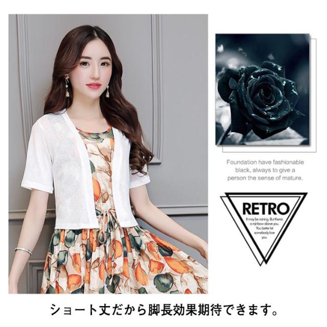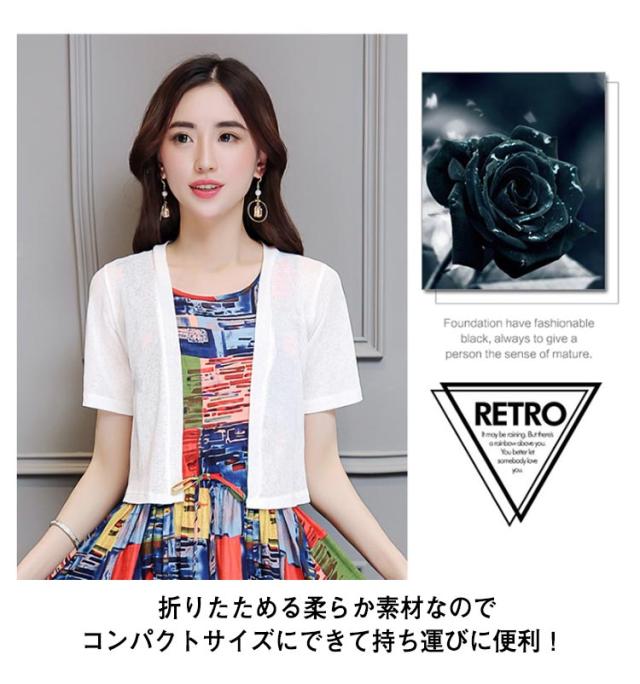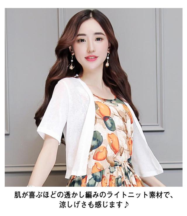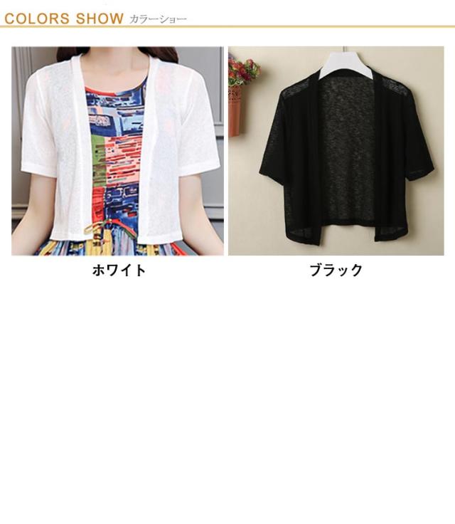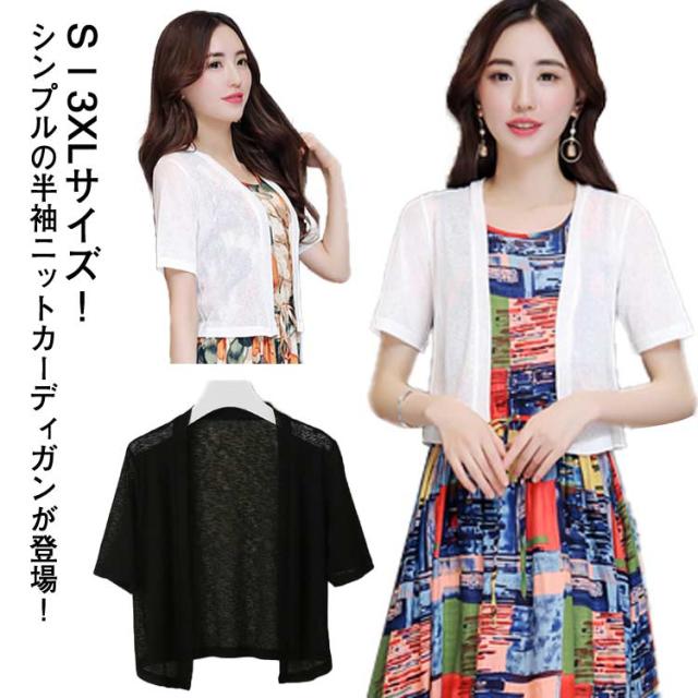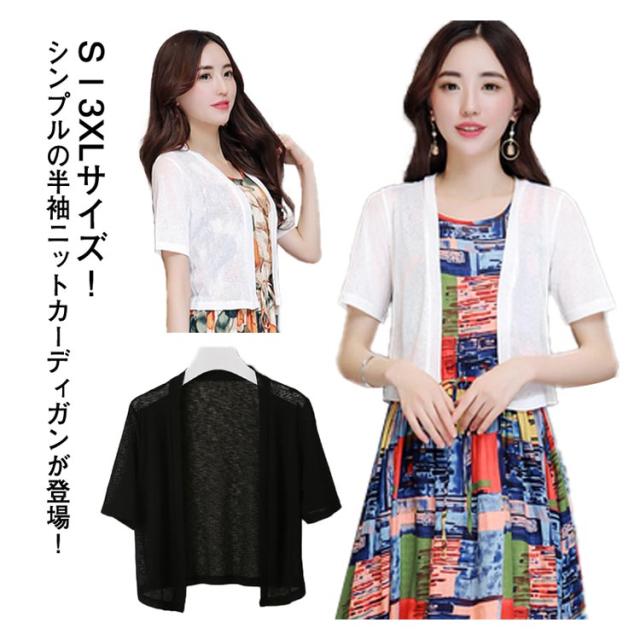 S−3XLサイズ!送料無料 サマーカーディガン ショート丈 ニットカーディガン カーディガン ボレロ 半袖 羽織り シンプル 無地 夏 ブラック ホワイト