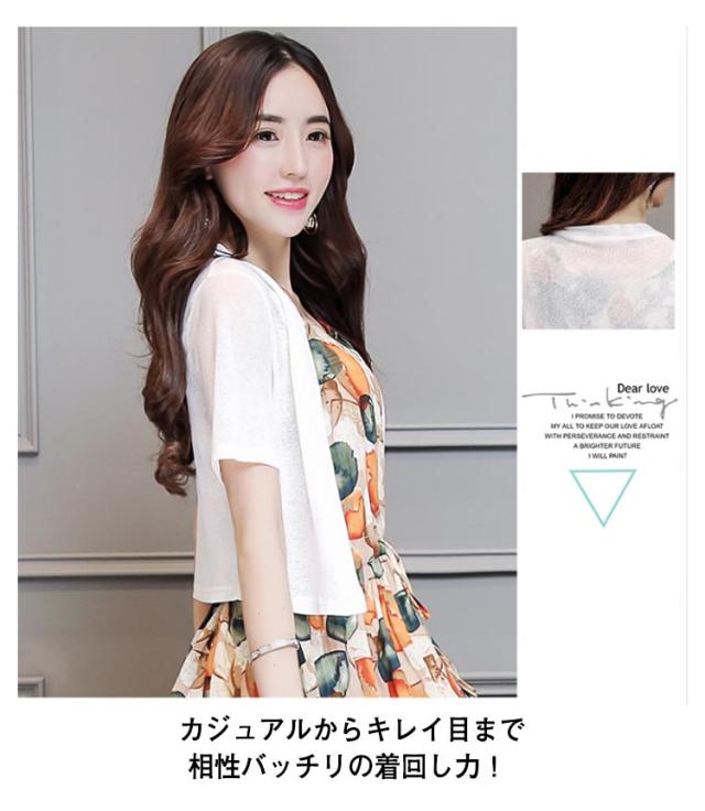 | S−3XLサイズ!シンプルの半袖ニットカーディガンが登場! ショート丈だから脚長効果期待できます。 肌が喜ぶほどの透かし編みのライトニット素材で、涼しげさも感じます♪ カジュアルからキレイ目まで相性バッチリの着回し力! ふんわり優しい触り心地で肌にも負担をかけません♪ 折りたためる柔らか素材なのでコンパクトサイズにできて持ち運びに便利! 夏のキャミソールやノースリーブワンピースなどに欠かせない一着間違いなし。 | |