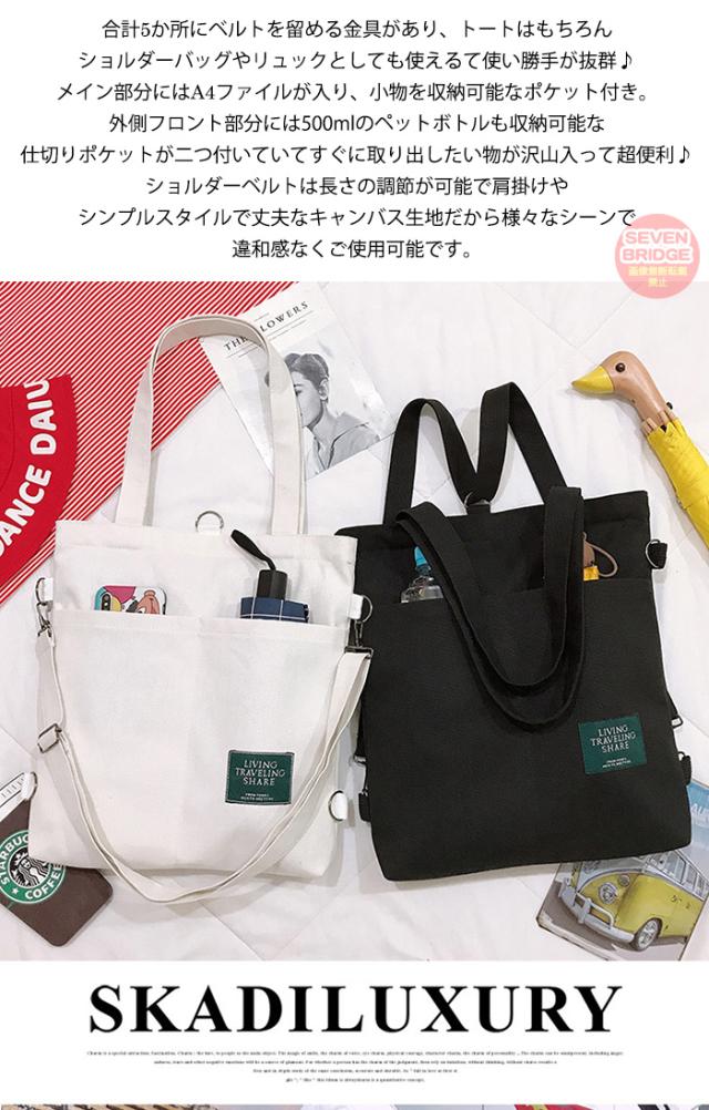 3way 鞄 かばん トートバッグ リュック ショルダーバッグ 軽量 大容量 バッグ a4 エコバッグ ファスナー ポケット h0499