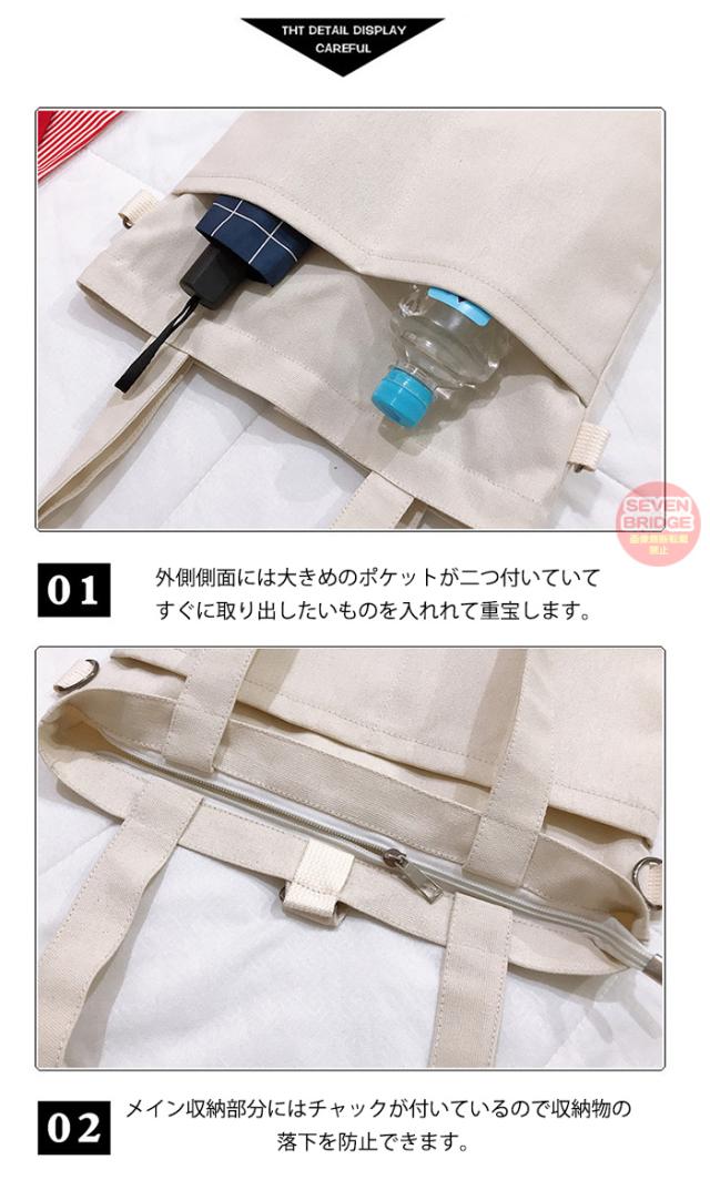 合計5か所にベルトを留める金具があり、トートはもちろんショルダーバッグやリュックとしても使えるて使い勝手が抜群♪ メイン部分にはA4ファイルが入り、小物を収納可能なポケット付き。 外側フロント部分には500mlのペットボトルも収納可能な仕切りポケットが二つ付いていてすぐに取り出したい物が沢山入って超便利♪ ショルダーベルトは長さの調節が可能で肩掛けやシンプルスタイルで丈夫なキャンバス生地だから様々なシーンで違和感なくご使用可能です。 【商品詳細】 ■サイズ:縦約38cm × 横約33cm × マチ約4cm ■カラー:ブラック/イエロー/ベージュ/ホワイト ※モニターによって実際の商品と色が異なって見える場合がございますがご了承下さい。 ※輸入品の為、細かいほつれ、傷、糸の飛出しなどがある場合がございますがご了承下さい。 【検索ワード】 マザーズバッグ お洒落 おしゃれ 通学 通勤 大人 バイカラー ママバッグ 可愛い かわいい キレイめ ガーリースタイル サブバッグ ハンドバッグ 斜めがけ シンプル レディース 女性 キャンバスバッグ |