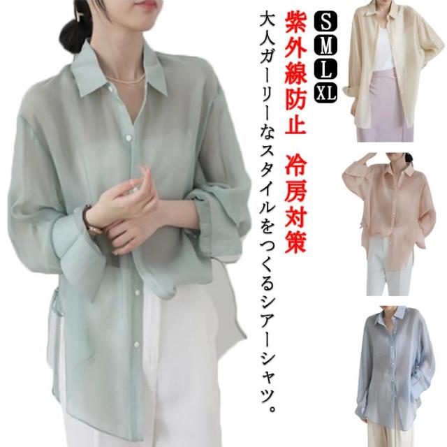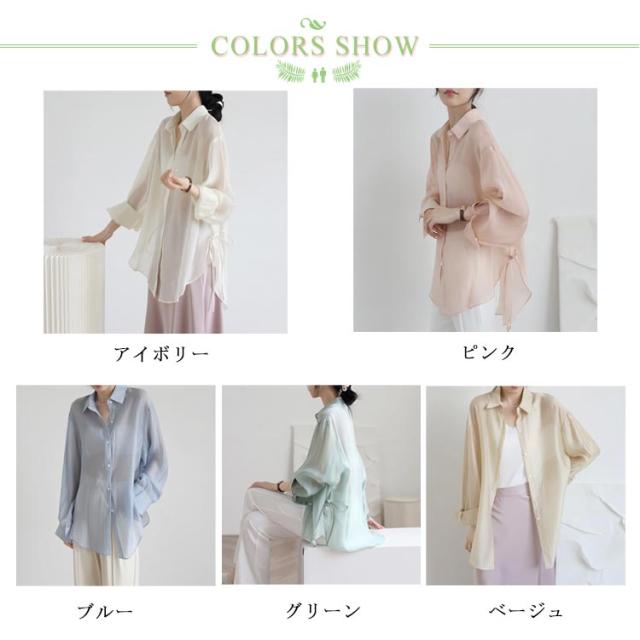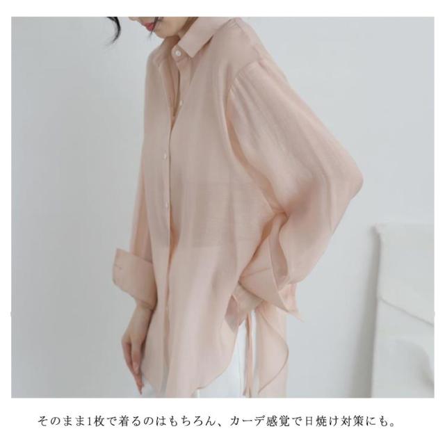 シアーシャツ シースルーシャツ 長袖 シアー シャツ ブラウス レディース トップス 紫外線対策 脇リボン 羽織り カジュアル ゆったり 着回し おしゃれ 春 夏 uvカット 紫外線防止 冷房対策 送料無料 ピンク ブルー グリーン ベージュ