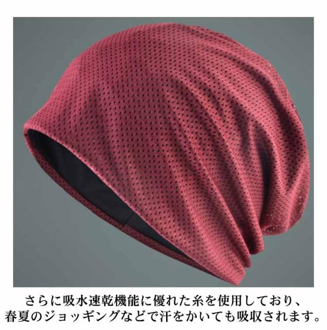 | メッシュ生地で通気性抜群、さわやかなかぶり心地です。抗がん剤治療、医療用帽子にも最適です。 伸縮性がありますので、様々な頭のサイズにフィットします。 さらに吸水速乾機能に優れた糸を使用しており、春夏のジョッギングなどで汗をかいても吸収されます。 生地が薄いので、小さく折りたためる!軽く手かさばらないので被らない時はカバンに入るので持ち運びも便利! | |