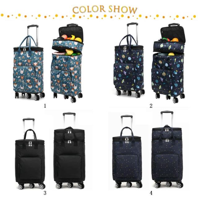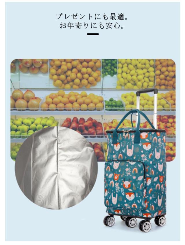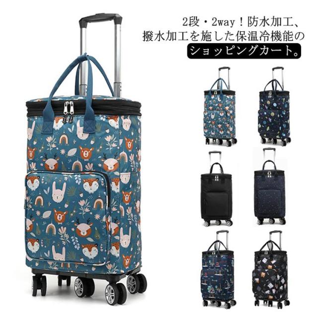 2段 ショッピングカート 5輪 横押し キャリーカート ショッピングキャリー 保温 保冷 キャリーバッグ お買い物カート 2way おしゃれ 静音 折りたたみ 買い物カート 保冷カート 防水 軽量 大容量 高齢者 お年寄り 荷物カート