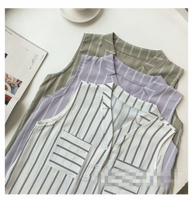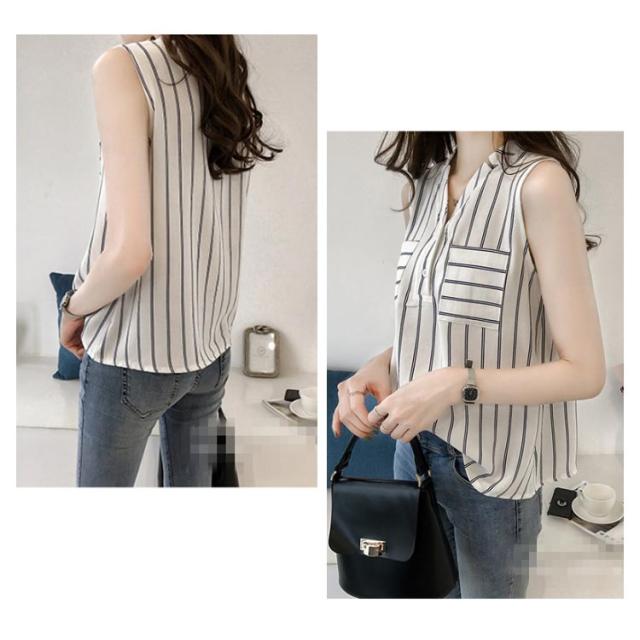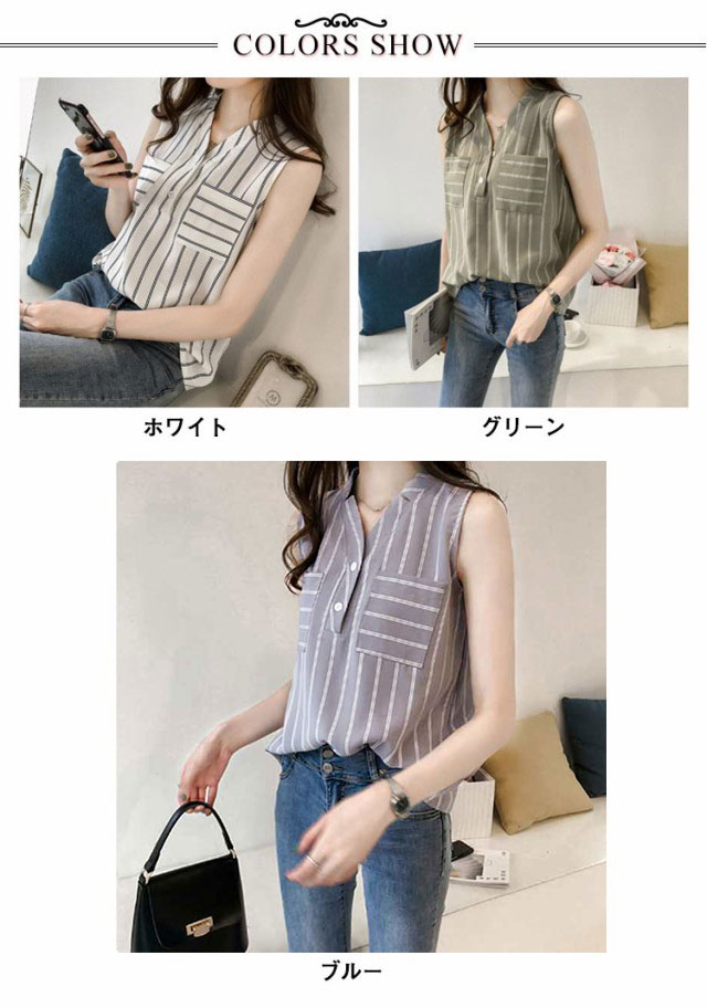 Vネック シャツ ノースリーブ レディース ストライプ ブラウス デコルテ 着回し フェミニン カジュアル 通勤 きれいめ トップス シャツ ゆったり シフォン 袖なし タンクトップ 重ね着 レイヤード シャツブラウス インナー 通勤 春 夏 送料無料